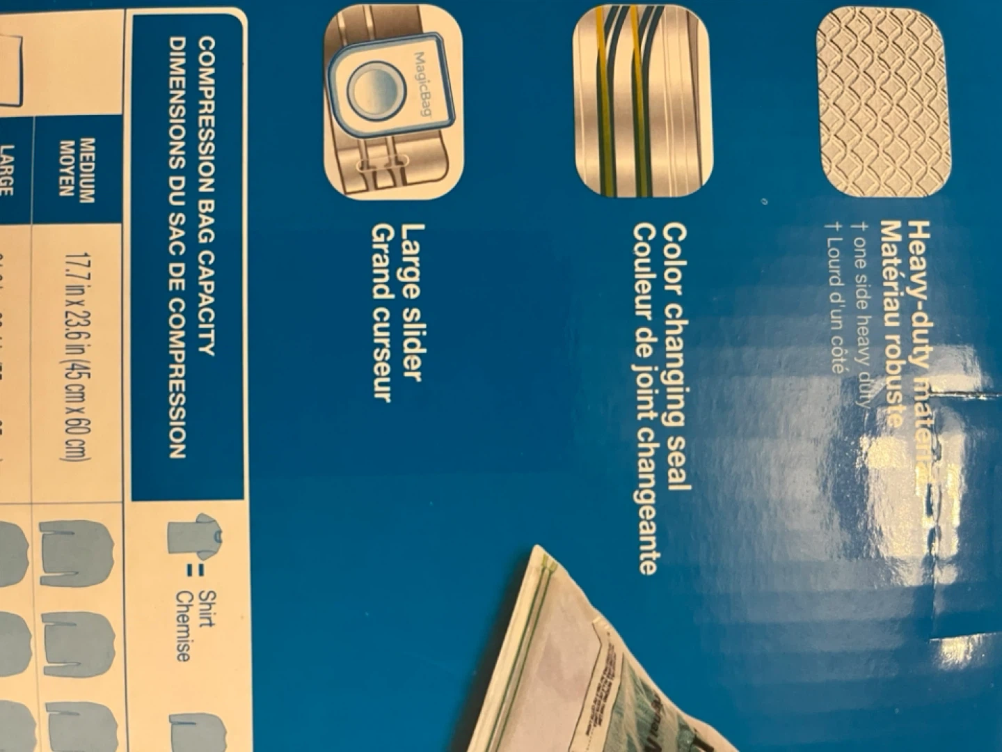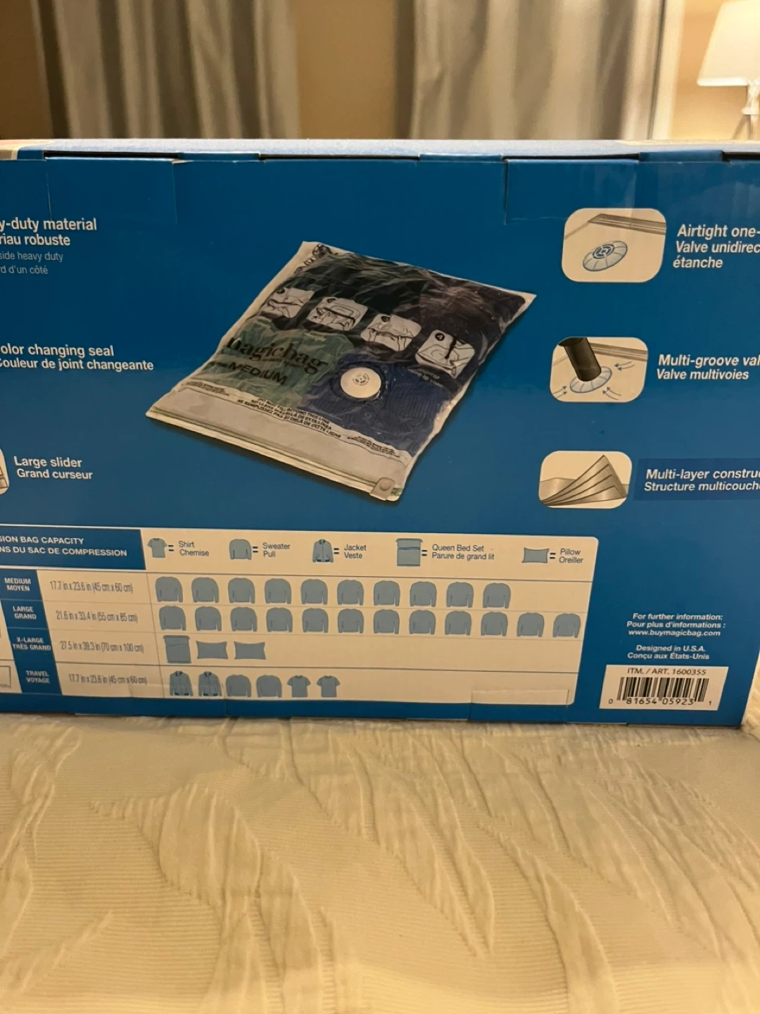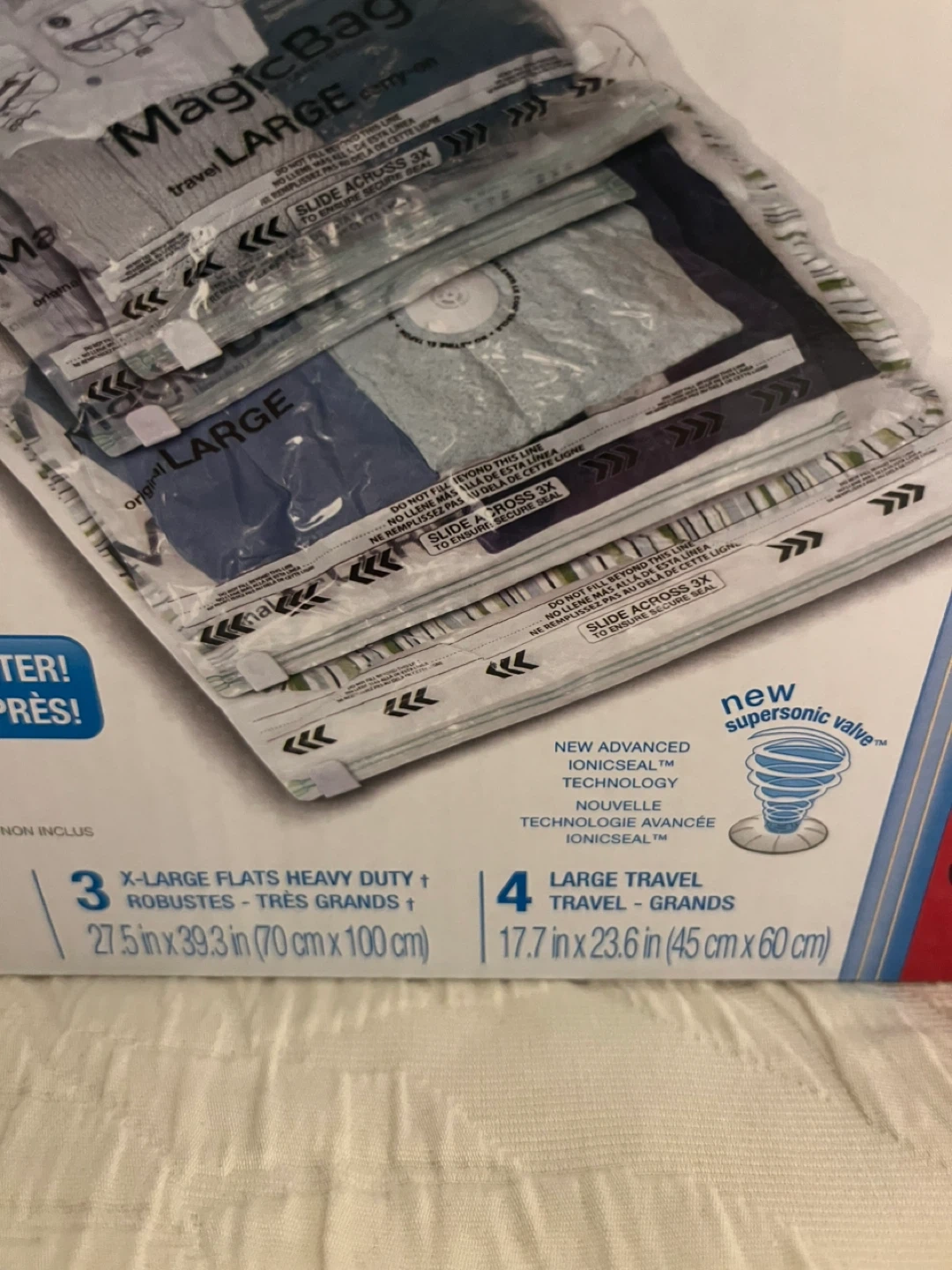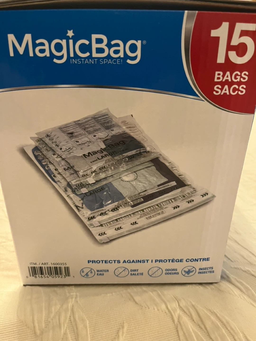 Selling a brand new, unopened box of Magic Bag Instant Space! bags. This set includes 15 bags in various sizes to help you maximize storage space.