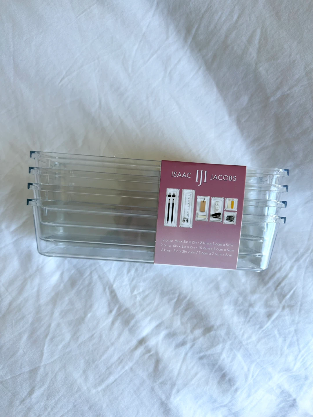 Brand new Isaac Jacobs 6-Piece Clear Drawer Organizer Set.