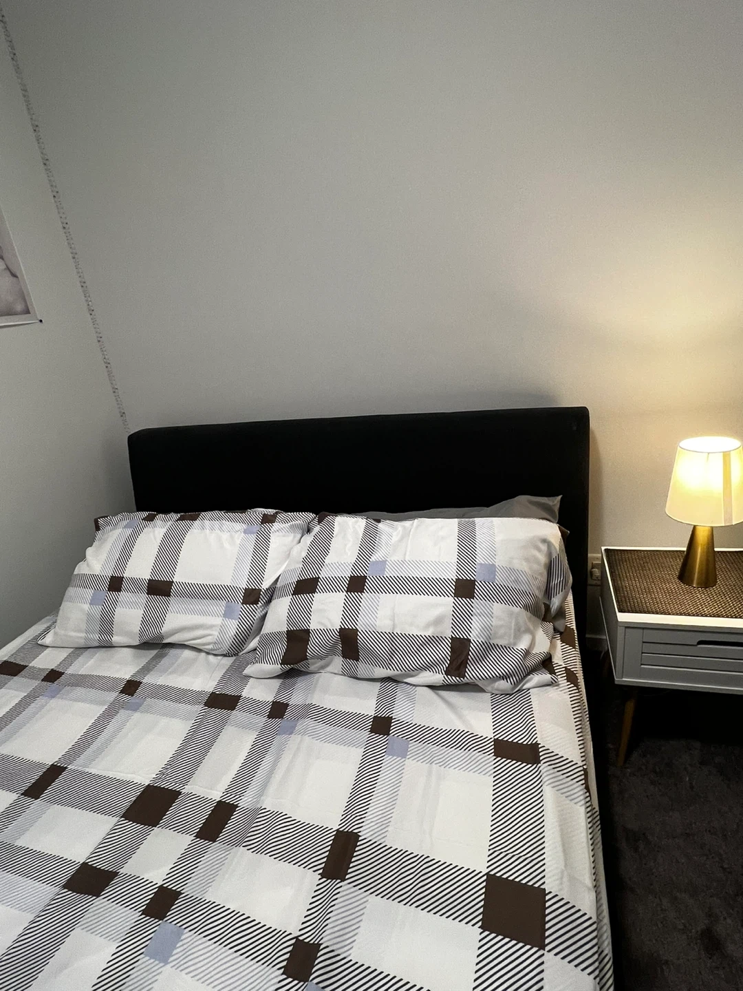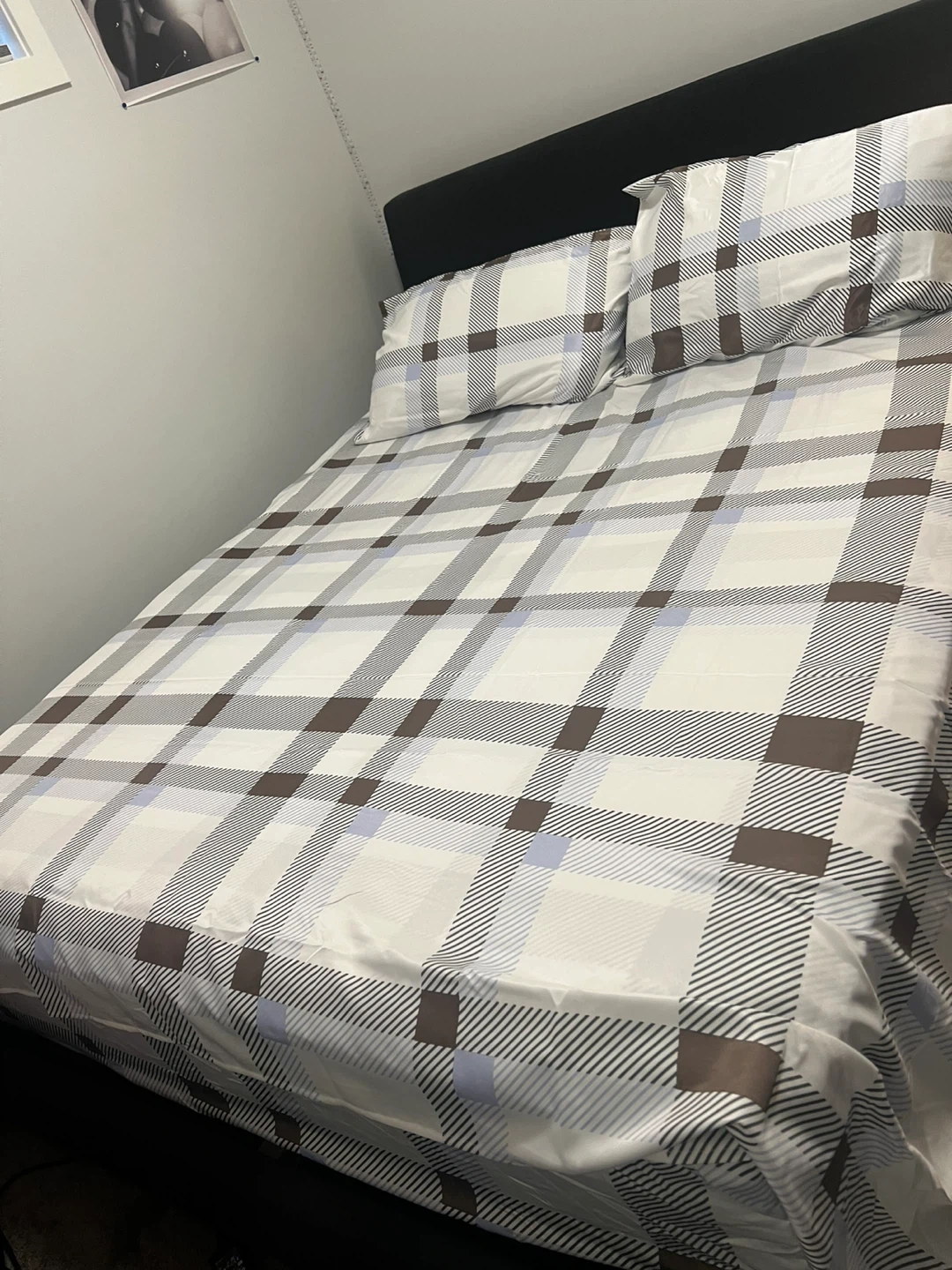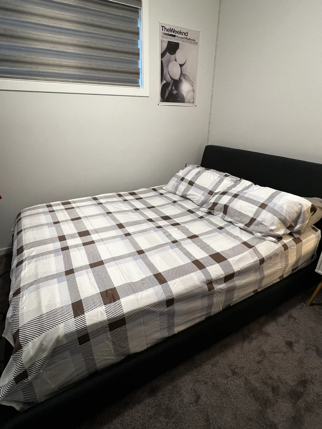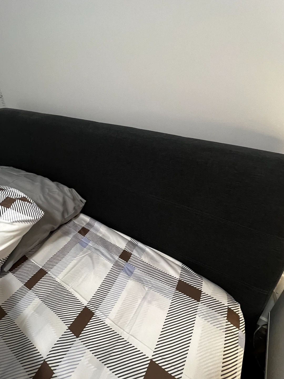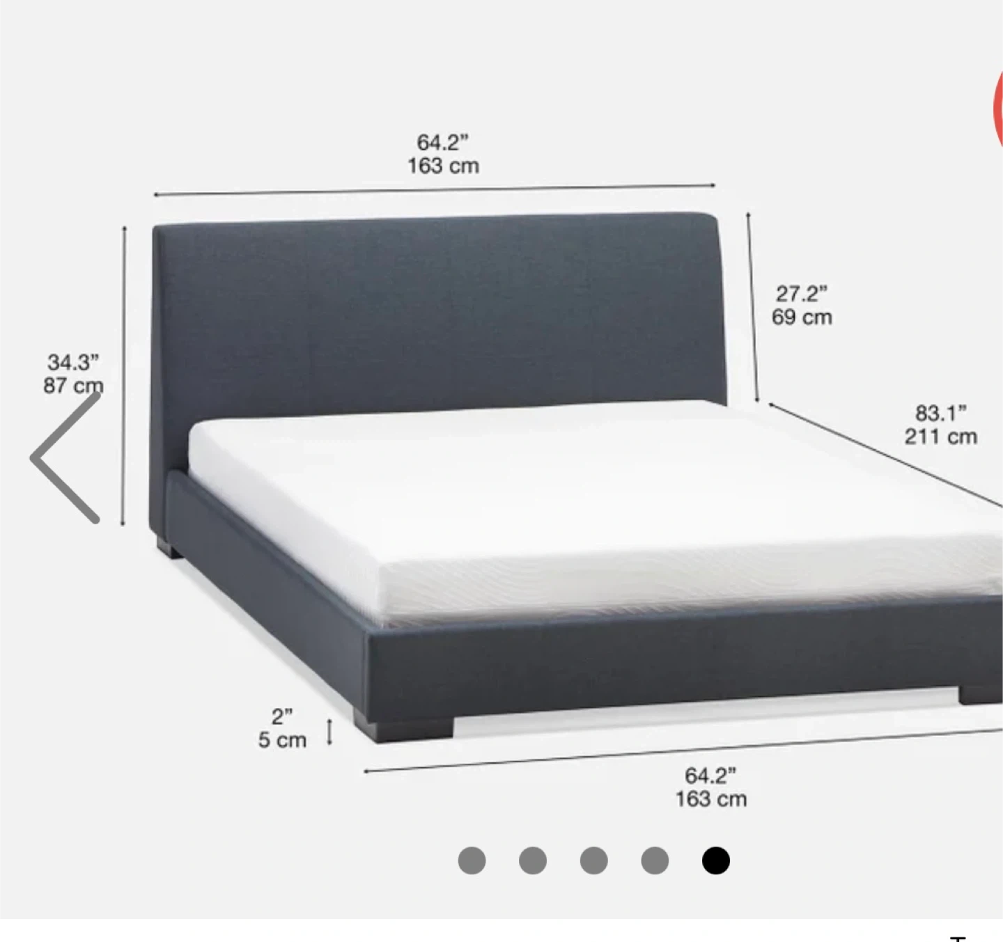 10Selling a queen size bed frame in dark grey! It's in great condition and ready for a new home. The dimensions are 64.2" x 83.1" (163 cm x 211 cm). The headboard height is 34.3" (87 cm).