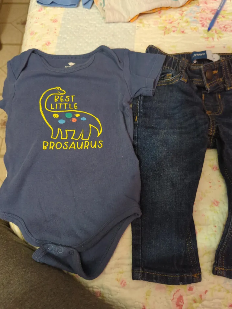 Cute outfit for your little one! Includes a Koala Baby bodysuit with a fun dinosaur design and Old Navy denim pants. Both are size 12-18M and in great condition