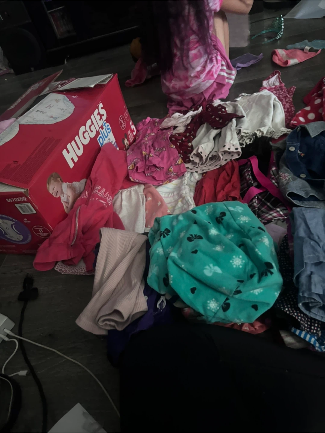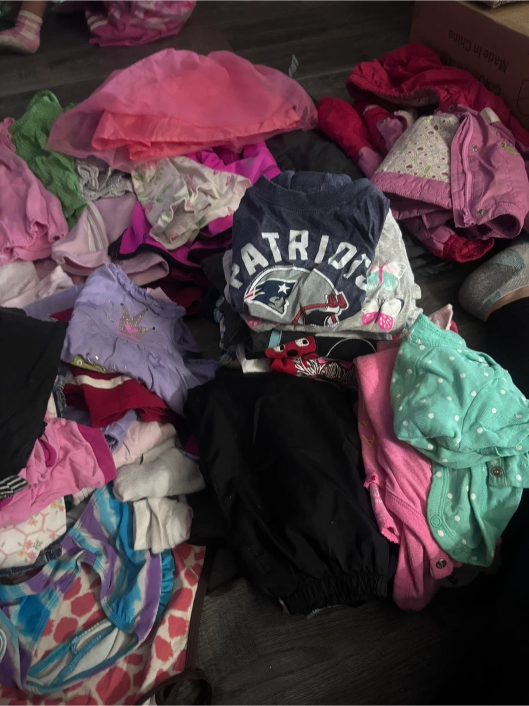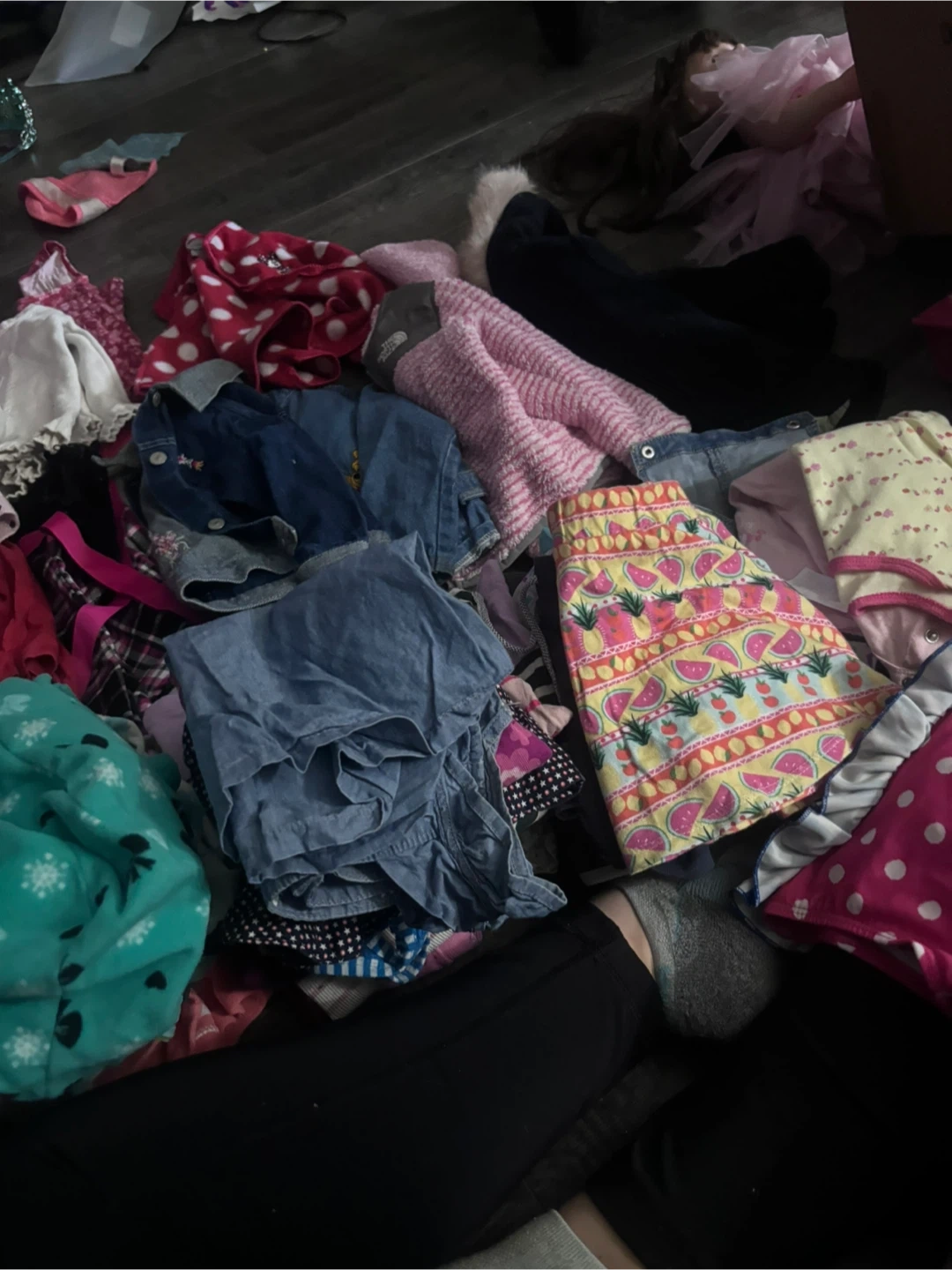 Pjs, shirts (long sleeve and short sleeve), pants, shorts, skirts, dresses, sweaters.