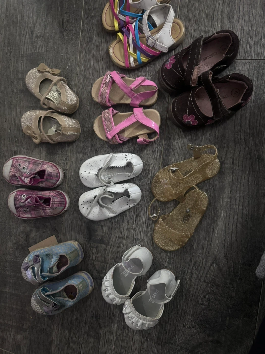 Very gently worn baby girls items. 156 items, including London Fog snow pants, a snow suit, a Zara hooded jacket, and nine pairs of shoes (size 4 and 5)