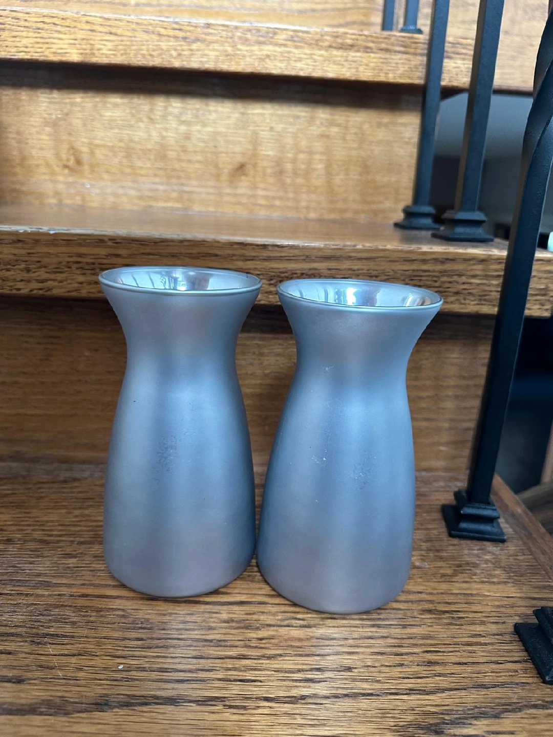 17Selling a set of two small vases. They have a nice silver colour and would look great as decor in any room!