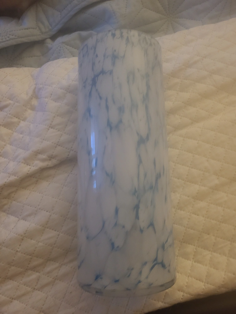 1000+Here's a lovely vase with a unique white and blue swirl pattern! It's in great condition and would look beautiful with flowers or as a standalone decorative piece