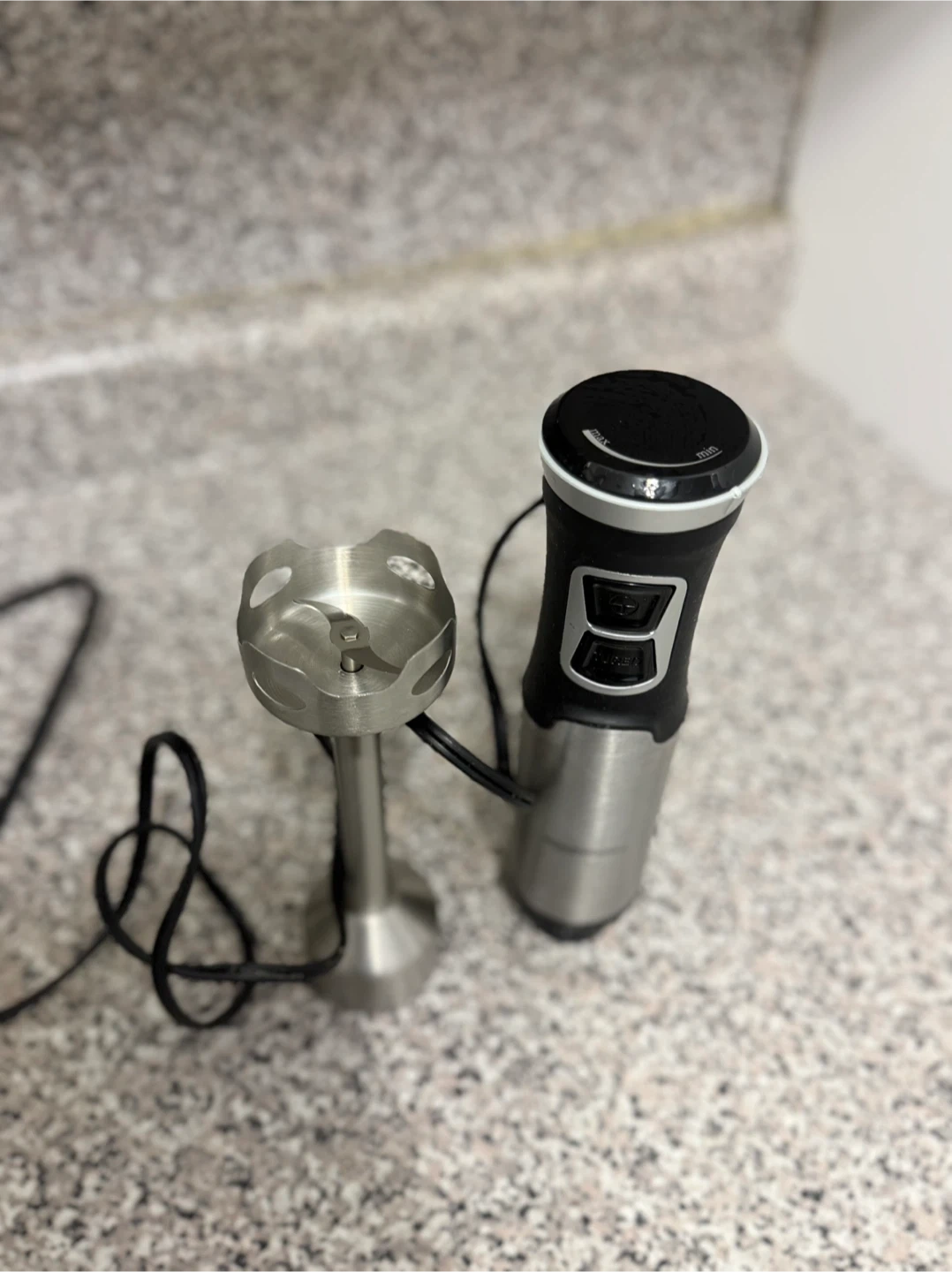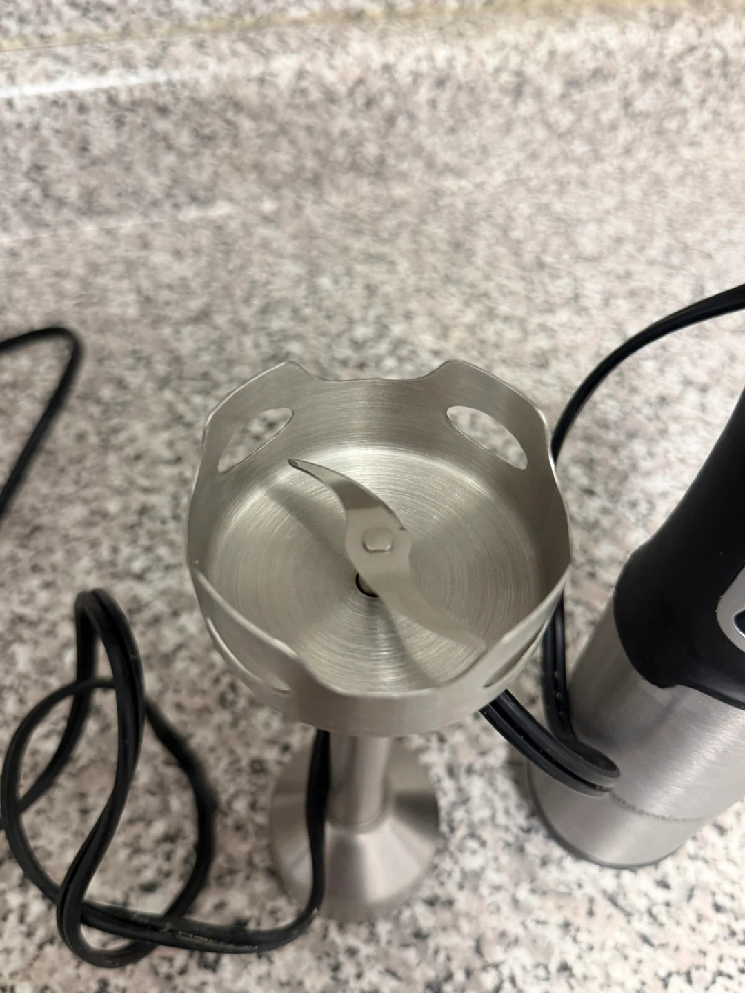 75Selling an AmazonBasics immersion hand blender! It comes with the blending attachment as shown. This blender is perfect for making smoothies, soups, and sauces. It's easy to use and clean, making it a great addition to any kitchen
