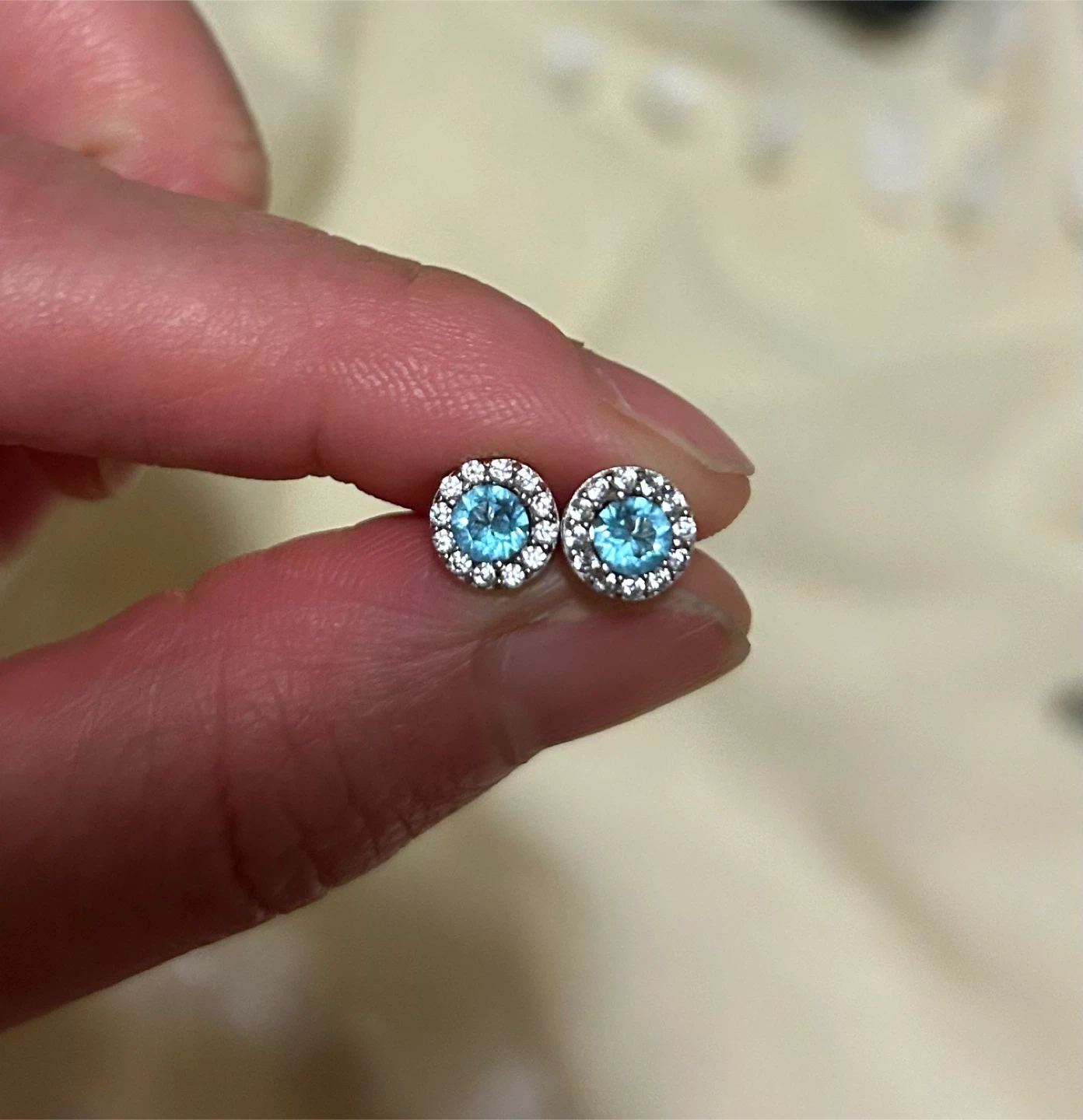 These are a pair of lovely genuine blue topaz stud earrings. Light blue topaz with cubic zirconia on 925 silver. They're in brand new condition and would be a perfect addition to any jewelry collection