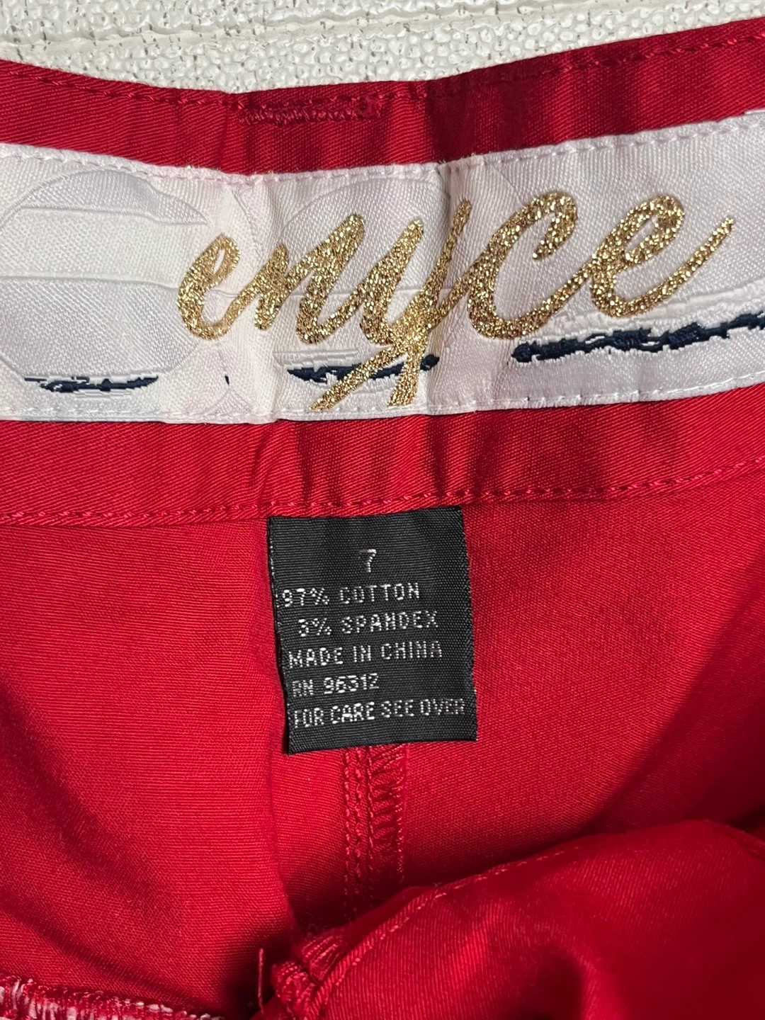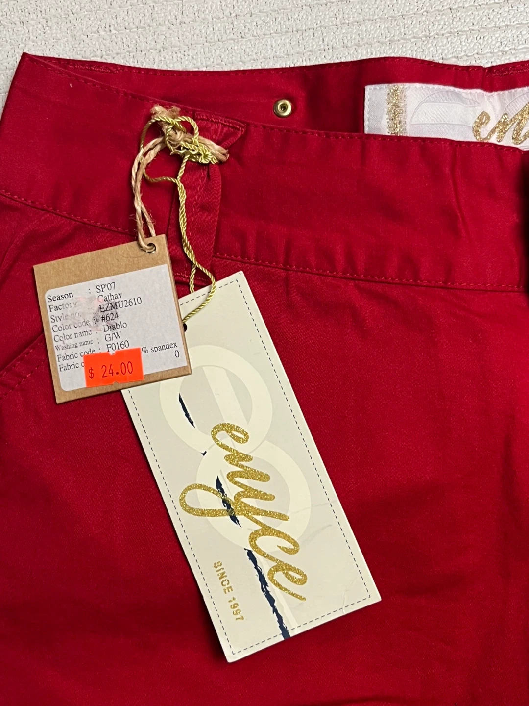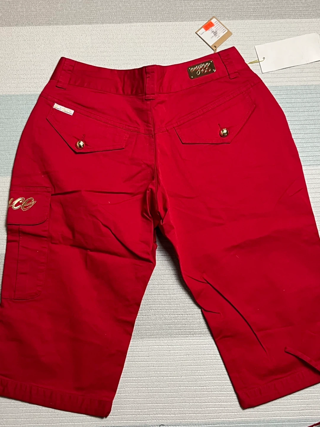31These red capri shorts from Enyce are a stylish addition to any wardrobe! They are size 7 and made of 97% cotton with 3% spandex. The shorts feature a unique design with pockets and gold detailing. Originally priced at $24.00, these shorts are in great condition and ready for a new home. Pick up at Brow of the Hill near 10th and Royal, New Westminster. Check out my other listings!