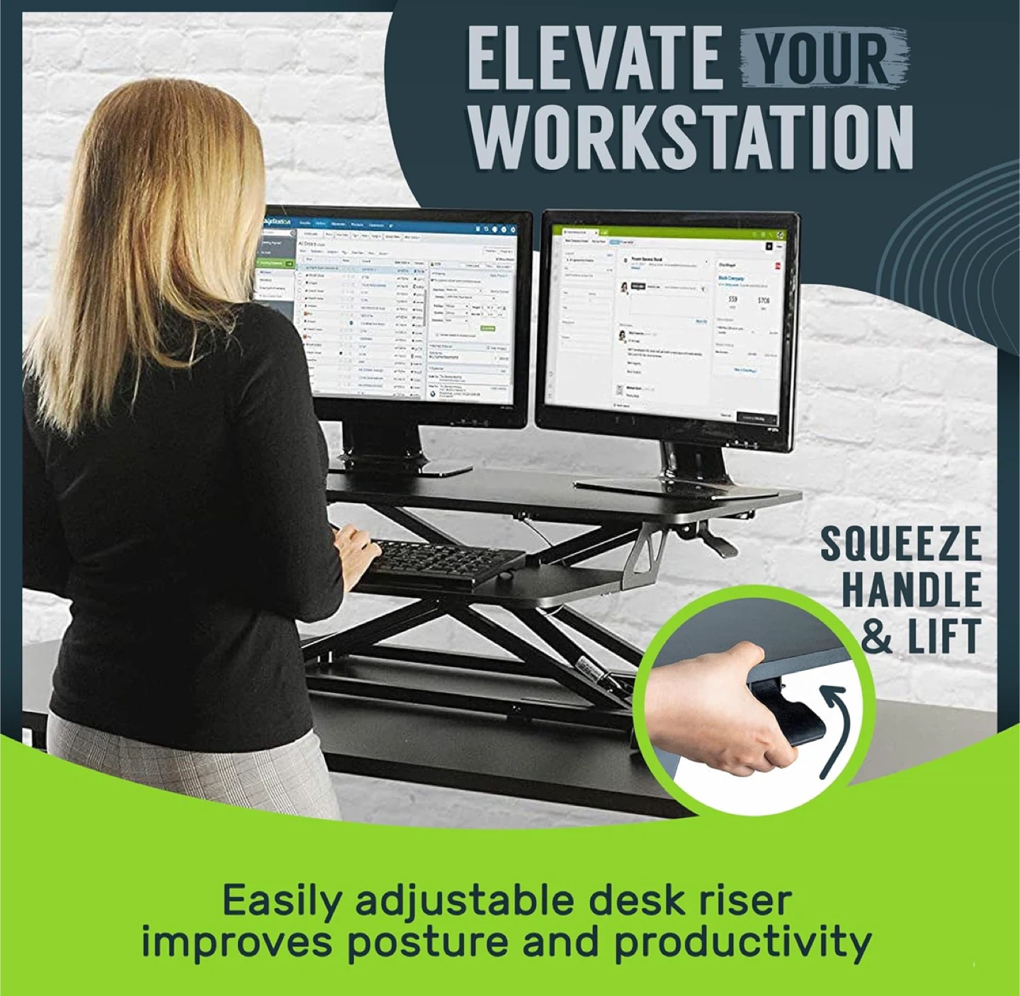 -Adjust to Get it Just Right: Ready to stand? Squeeze the handle and use your weight to adjust the height of your workstation. Our TechOrbits stand-up workstation is perfect for dynamic working styles and easily raises to your desired level (4.3” to 19.7”)