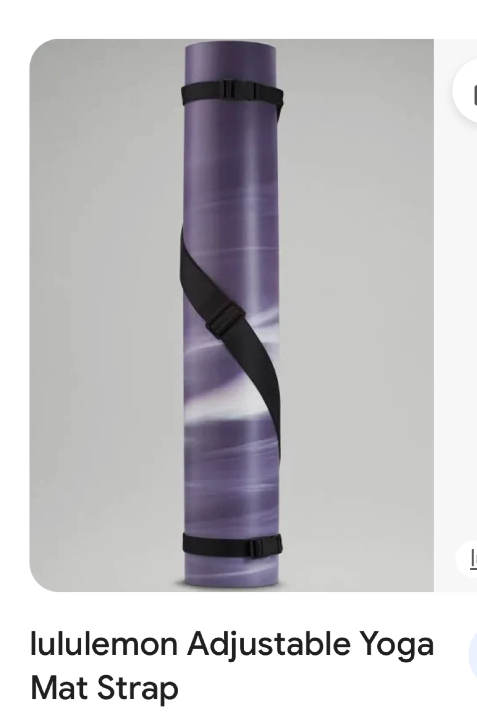 Selling a Lululemon adjustable yoga mat strap. This strap makes carrying your yoga mat a breeze. It's in great condition and ready for a new home!
