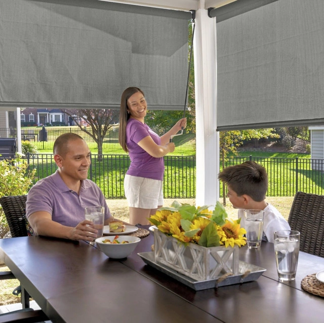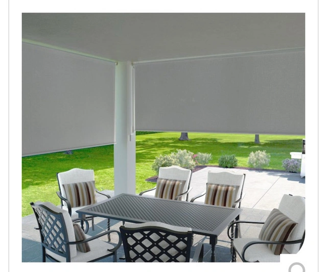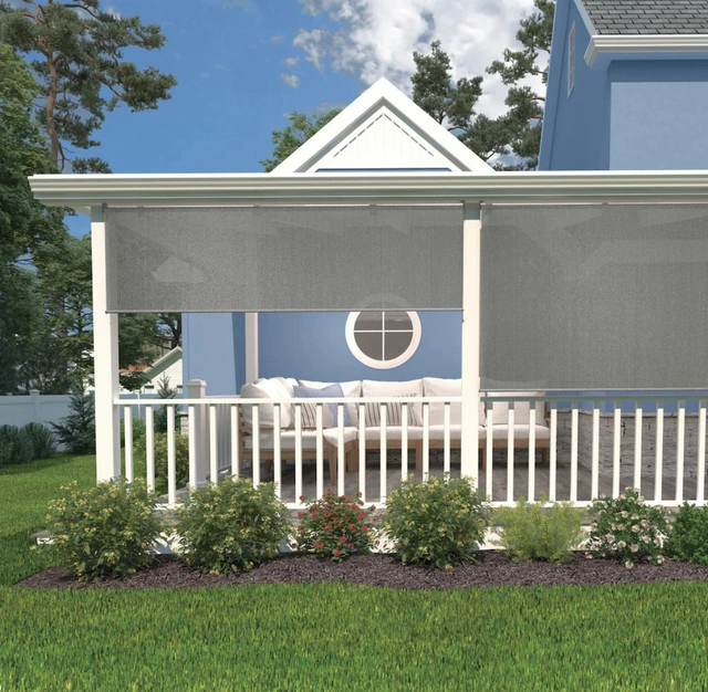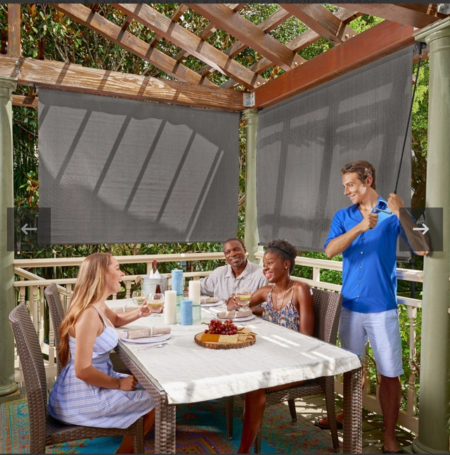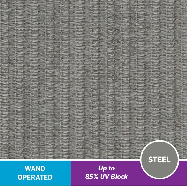 Constructed with breathable knitted fabric that allows airflow, these weather-resistant shades resist fading, ensuring they will look great for a long time. It is operated by a wand. These outdoor shades are a fantastic way to enhance your outdoor living space, providing both comfort and privacy.