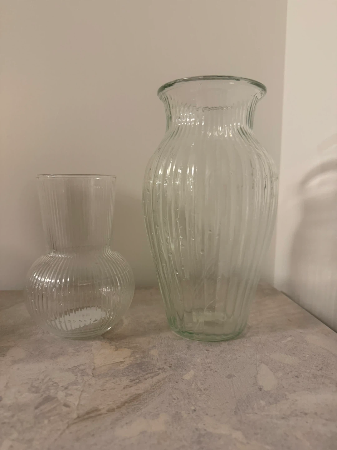 36Selling a set of two clear glass vases. They're in great condition and would look lovely with flowers or as decorative pieces on their own