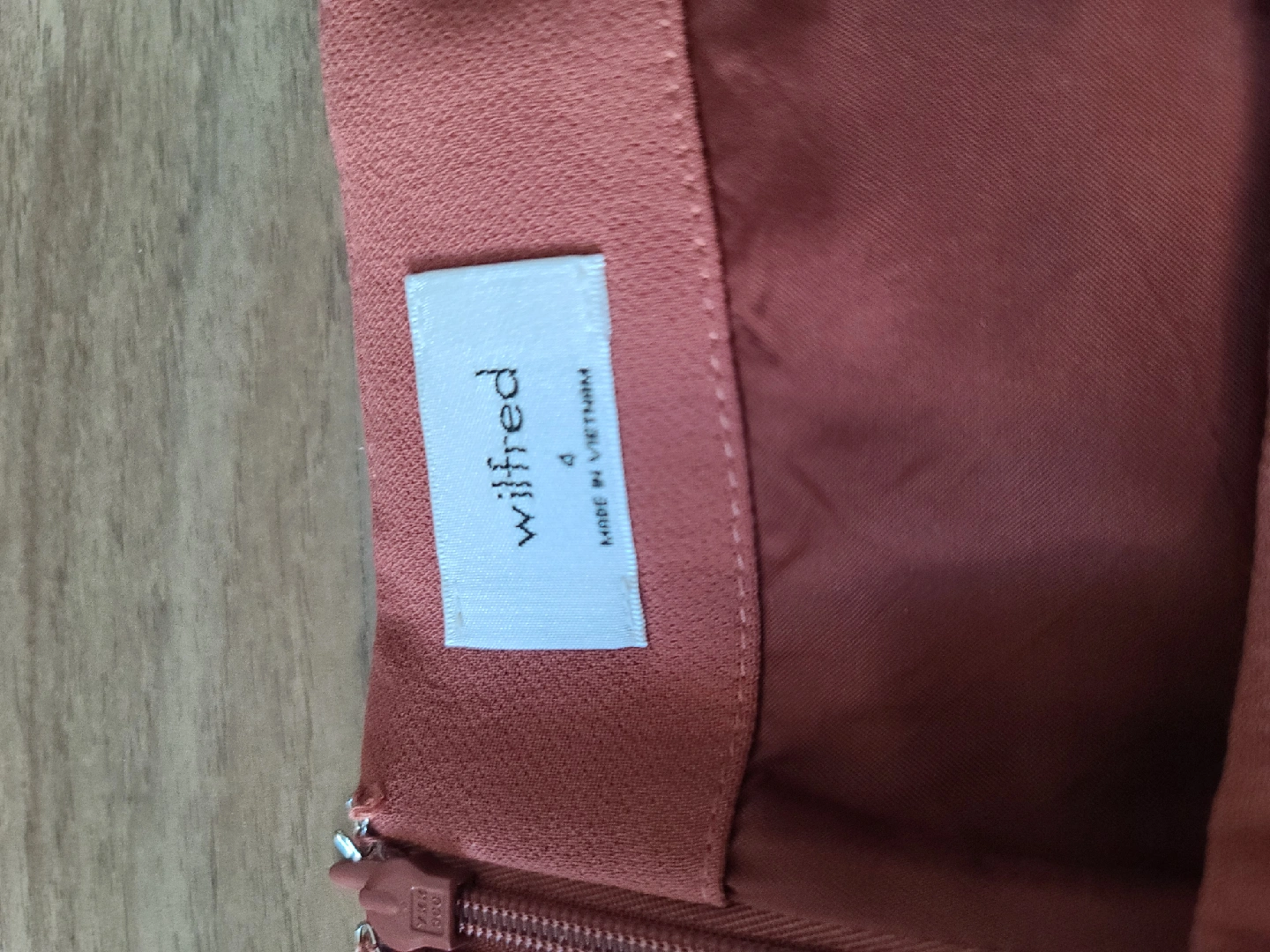 Buy & SellWilfred Rust Orange Skirt - Size 4Wilfred Rust Orange Skirt - Size 4$15Wilfred skirt in a rust orange colour. It's in great condition and a size 4.ConditionLike newSize40 chats·0 favorites·8 viewsSELLERGabrielaDavisville Village22220 reviewsWHERE TO MEETCheck Location