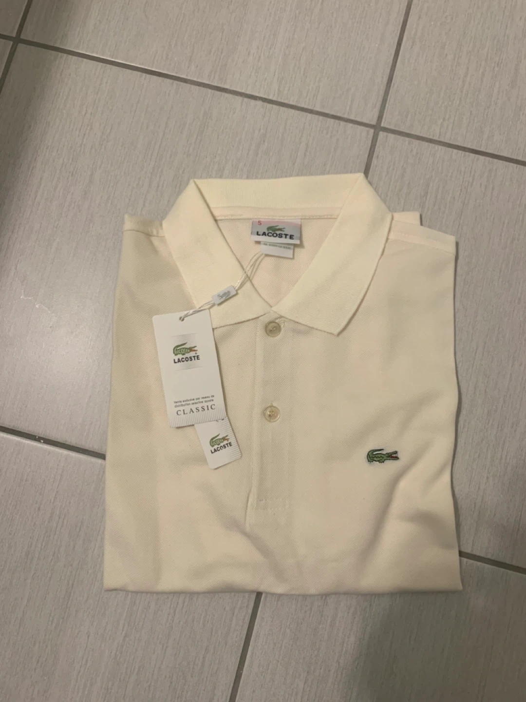 Selling a brand new Lacoste Classic Fit Polo Shirt in a lovely cream colour. It's in perfect condition, never worn and still has the original tags attached. This classic polo is a timeless piece and would make a great addition to any wardrobe