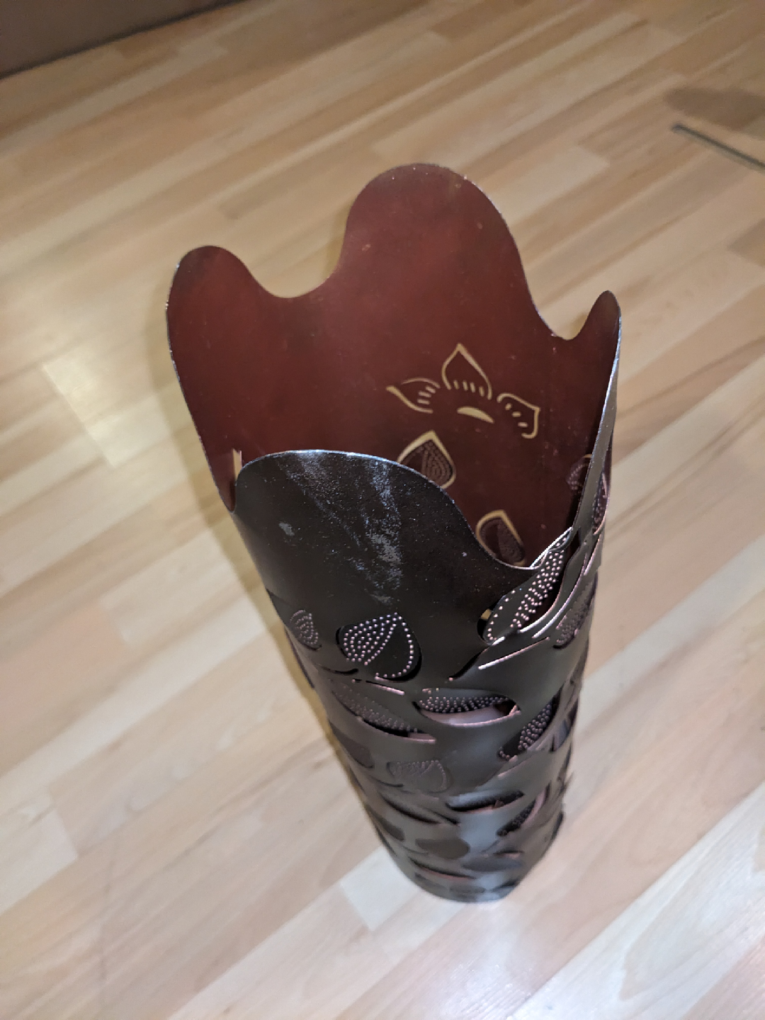 Metal Vase/Lamp with Leaf Cutout Design