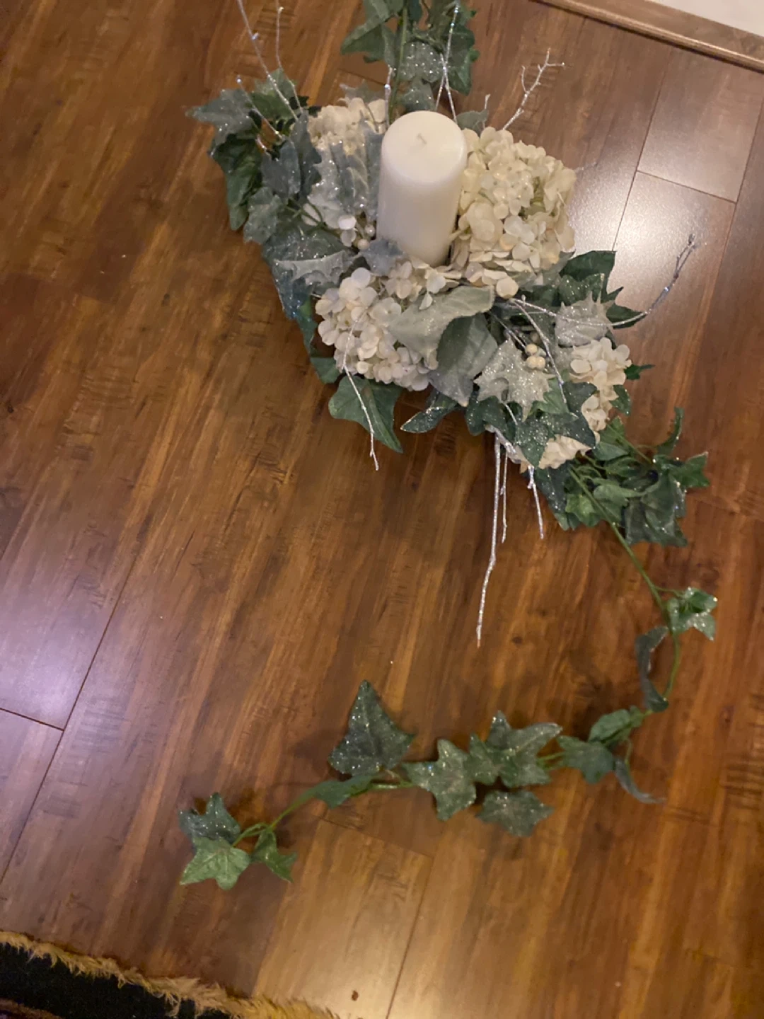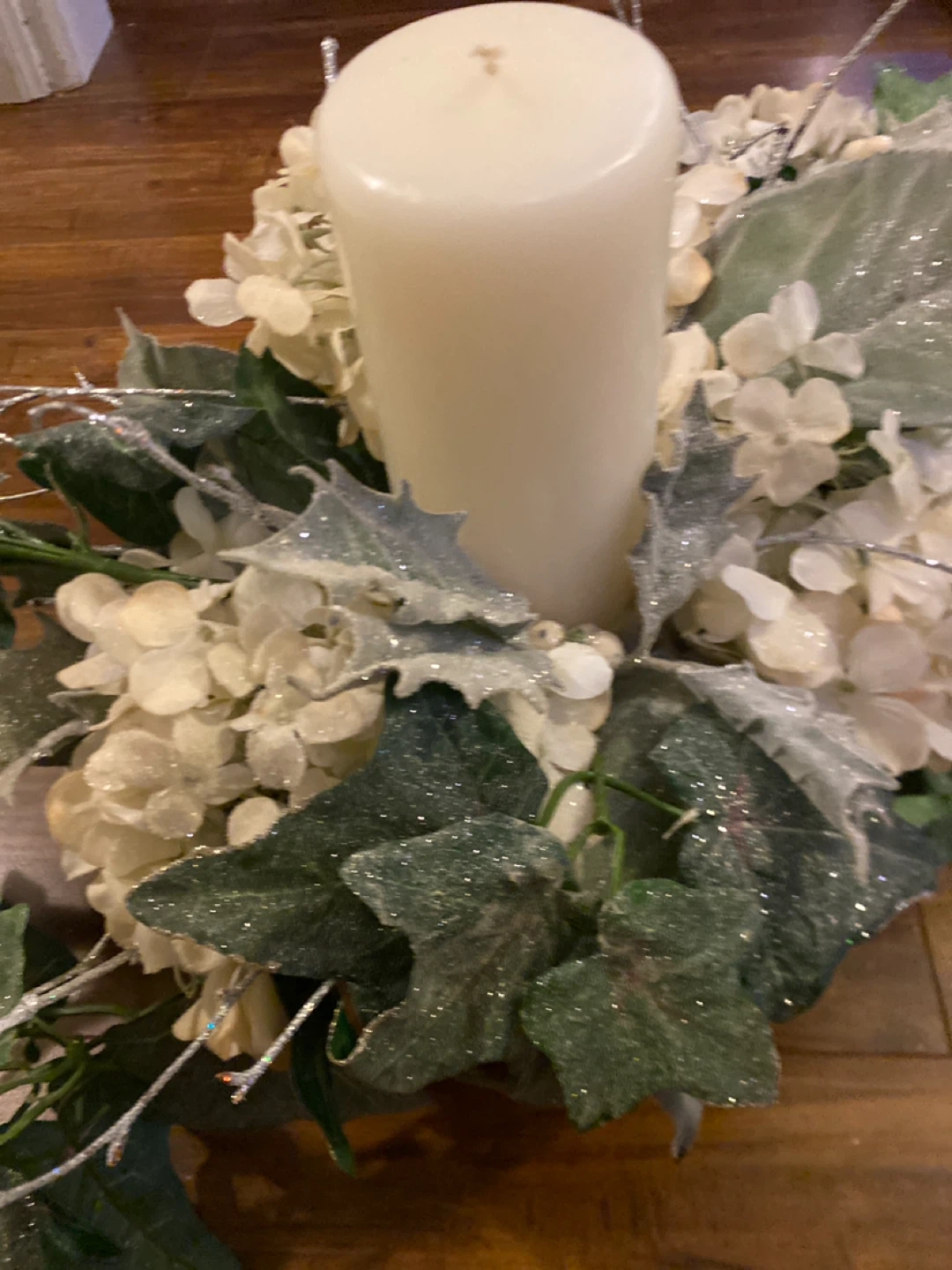 53A lovely candle surrounded by a floral arrangement! It would look great as a table centrepiece or as part of your home decor Candle not the included