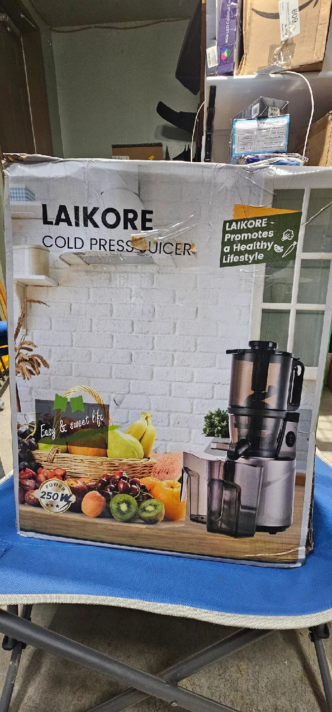 I'm selling a Laikore cold press juicer in excellent condition! It features a 250W motor and operates at 60 RPM for efficient juice extraction.
