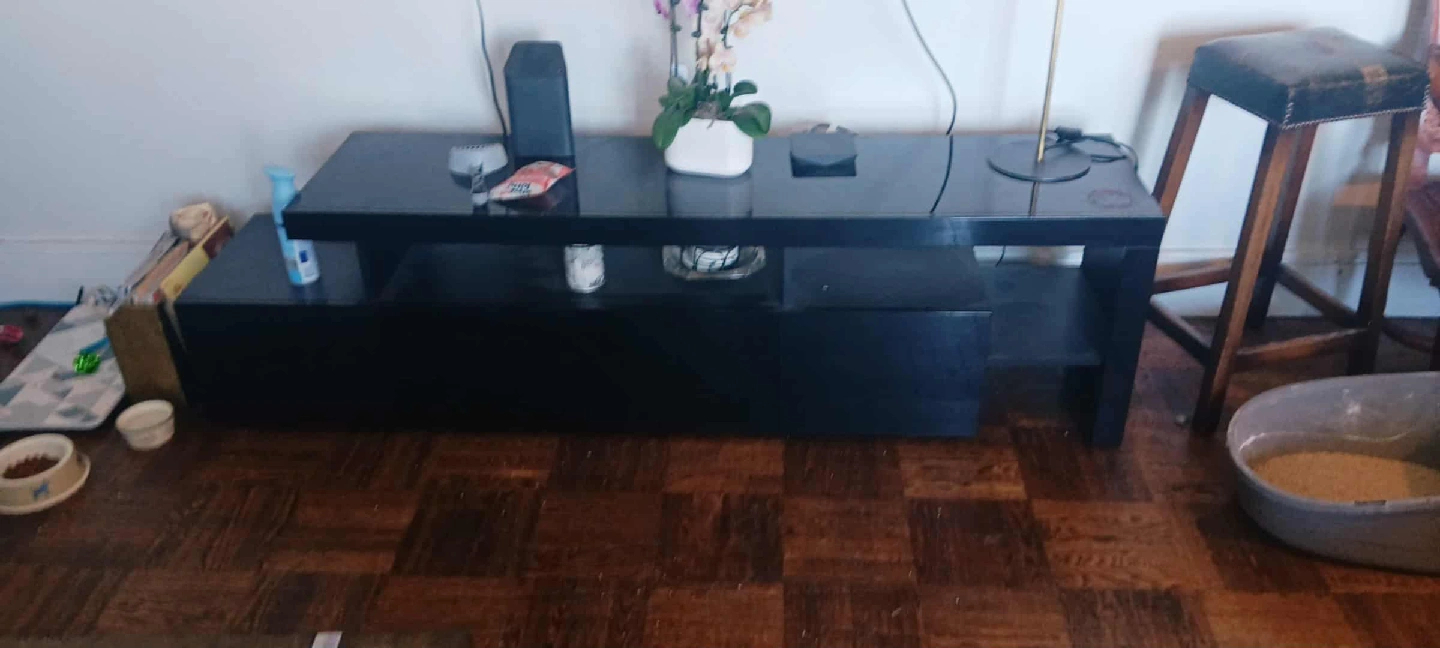 1000+Selling a black TV stand. I t has a sleek design and provides ample space for your media devices and accessories. It's in good condition and ready for a new home! 437-870-6281