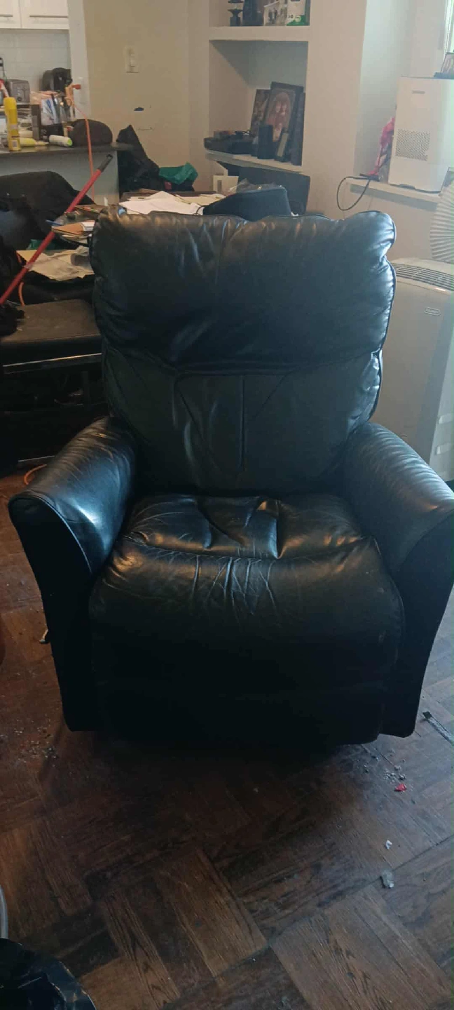 1000+Selling a comfy black leather recliner chair. It's in good condition and perfect for relaxing after a long day. The leather is soft and the reclining mechanism works great! 437-870-6281