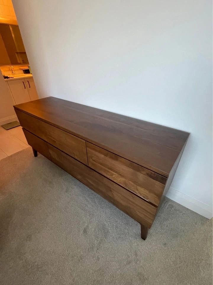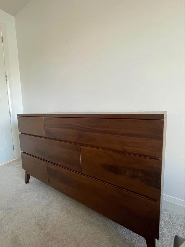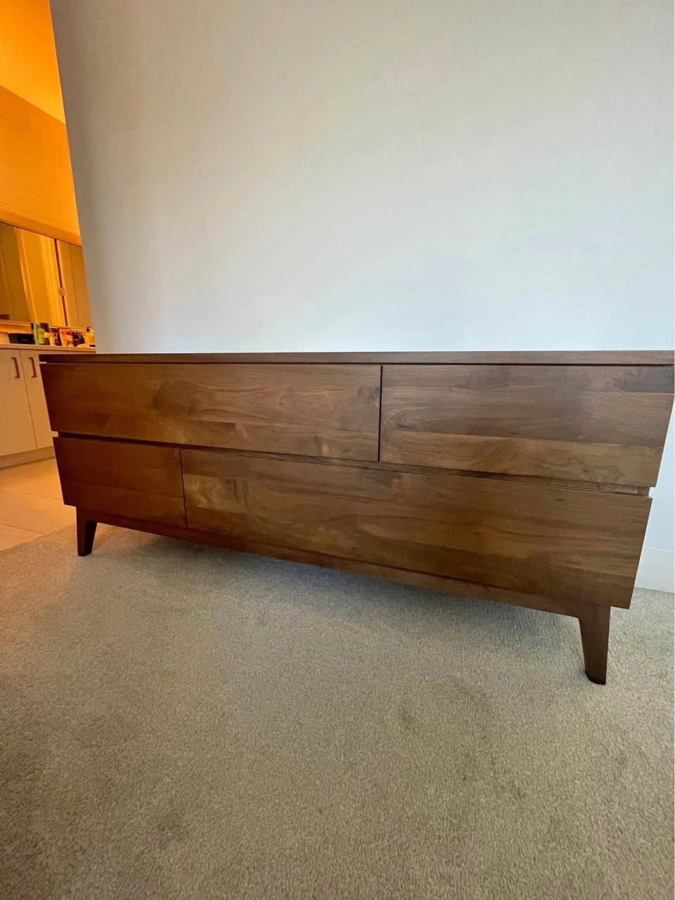 Furniture by West Bros, Ontario, Canada. Set of 2 bedroom dressers, 6 drawers and 4 drawers. Part of the Serra bedroom furniture range, these items are meticulously crafted high quality wood furniture, bound to elevate any bedroom. 6 drawer measures 62”x36”x19”. 4 drawer measures 68”x29”x19”. These items currently retail for $8650 new.
