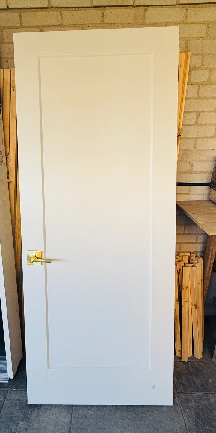 135Selling a white interior door. It comes with a gold handle. The door looks to be in good condition. Perfect for any room in your house! 32*80 sizes, Right handed Frame not included