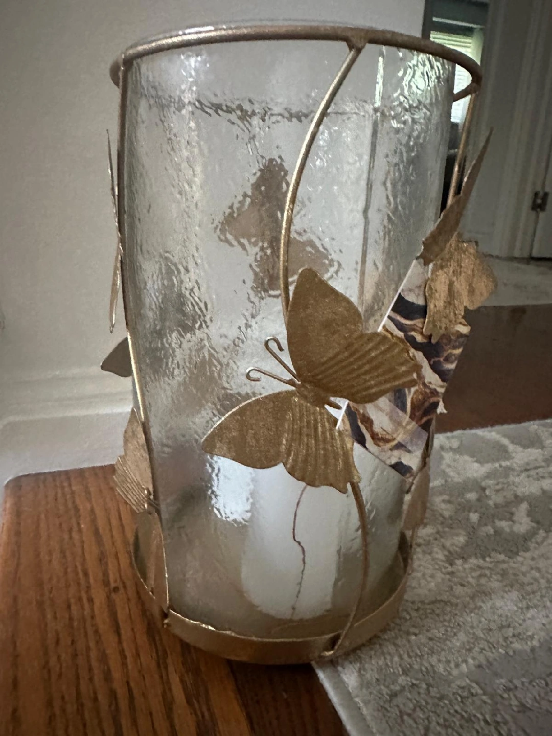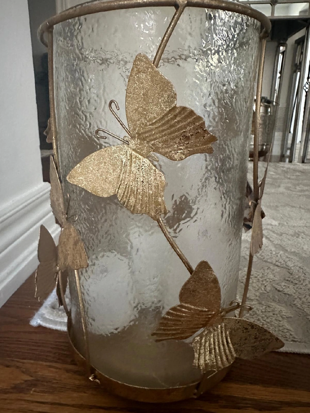 17Add a touch of elegance to your home with this beautiful Homesense candle holder! It features a glass cylinder adorned with delicate gold-tone butterflies. Originally priced at $29.99, it's a steal!