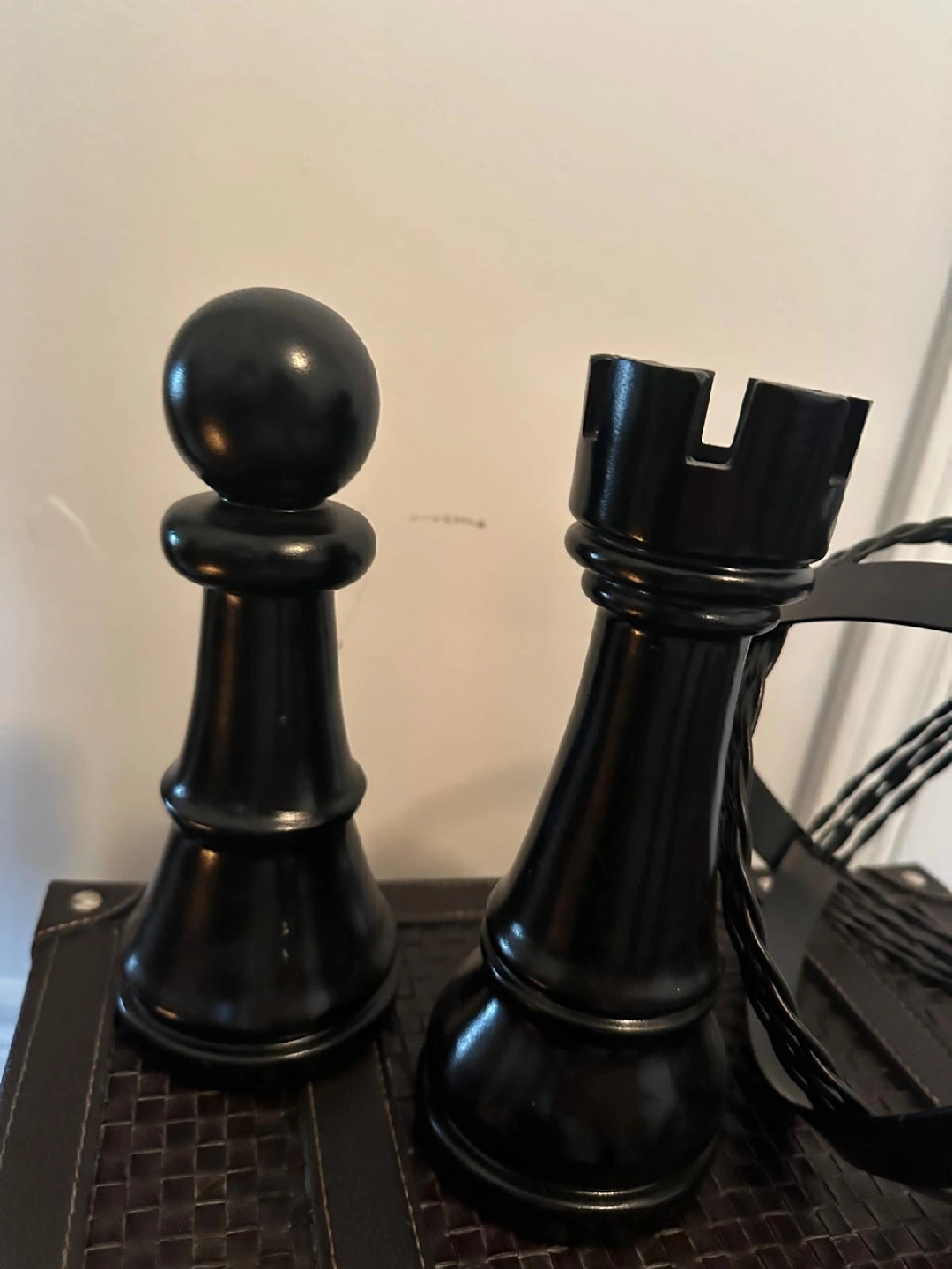 17Selling a set of decorative black chess pieces and a sphere. These would look great on a bookshelf or side table! They're in good condition and ready for a new home