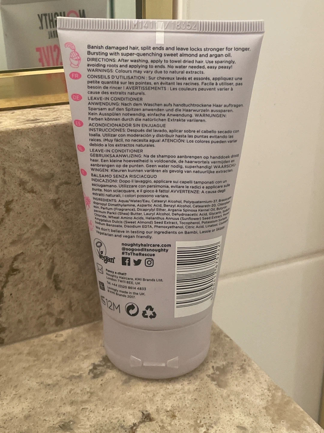 Giving away a Noughty 97% Natural Intensive Care Leave-In Conditioner for frizzy and damaged hair! It's a leave-in conditioner with sweet almond & argan oil. The bottle contains 150ml / 5 fl.oz. It's also vegan friendly