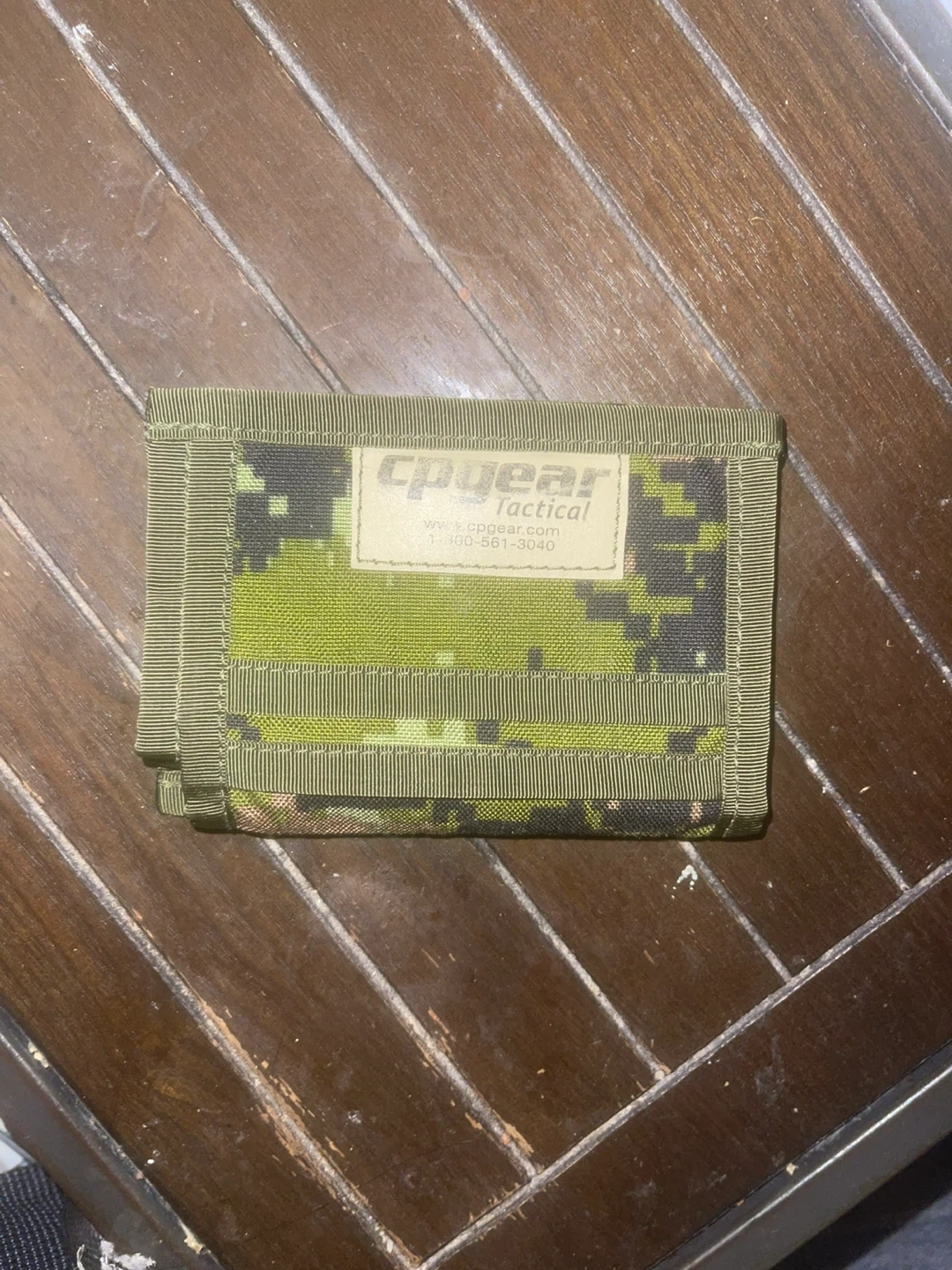 83Selling a CP Gear Tactical wallet in a camouflage pattern. It's in great condition and perfect for keeping your cards and cash organized!