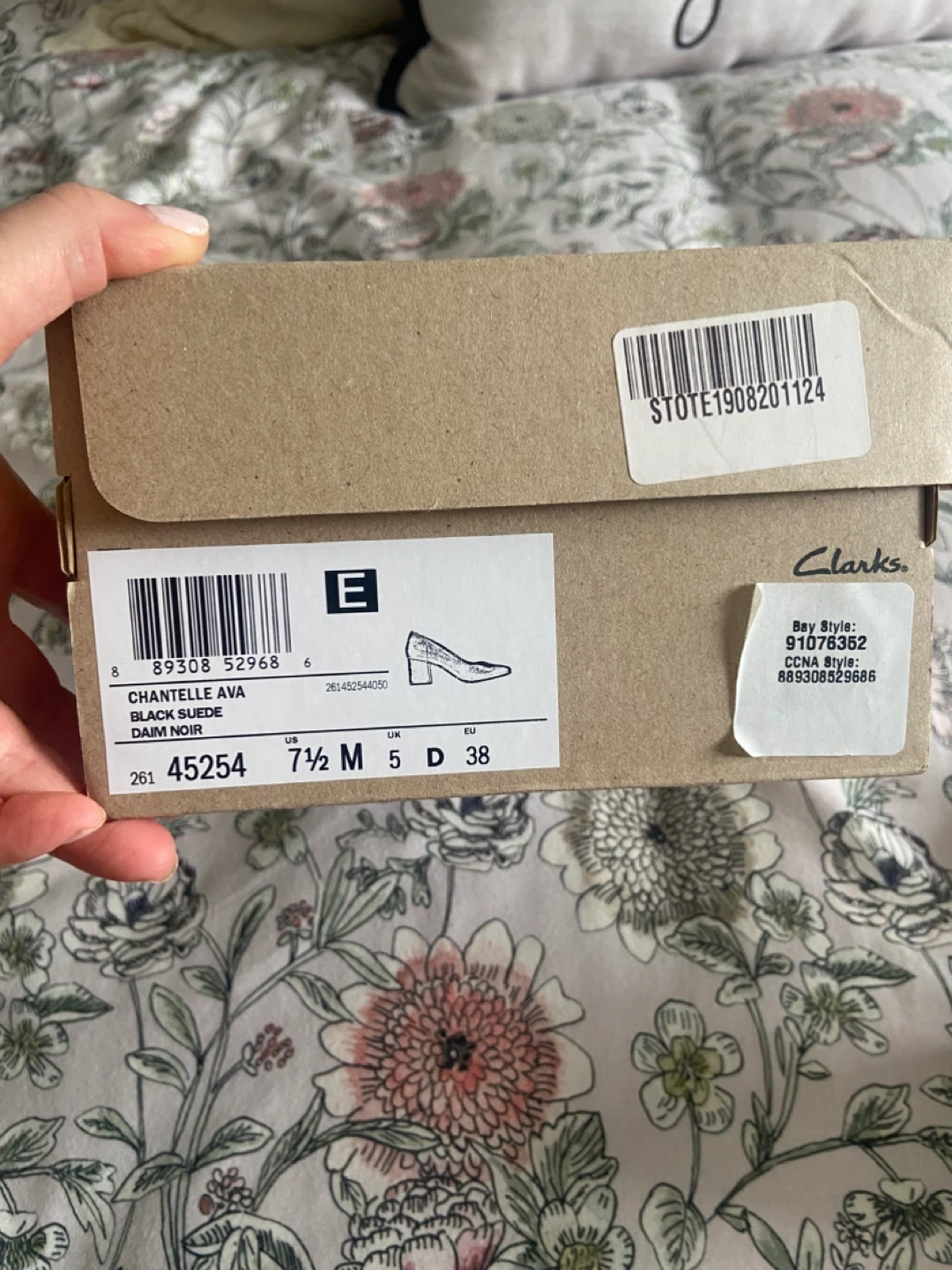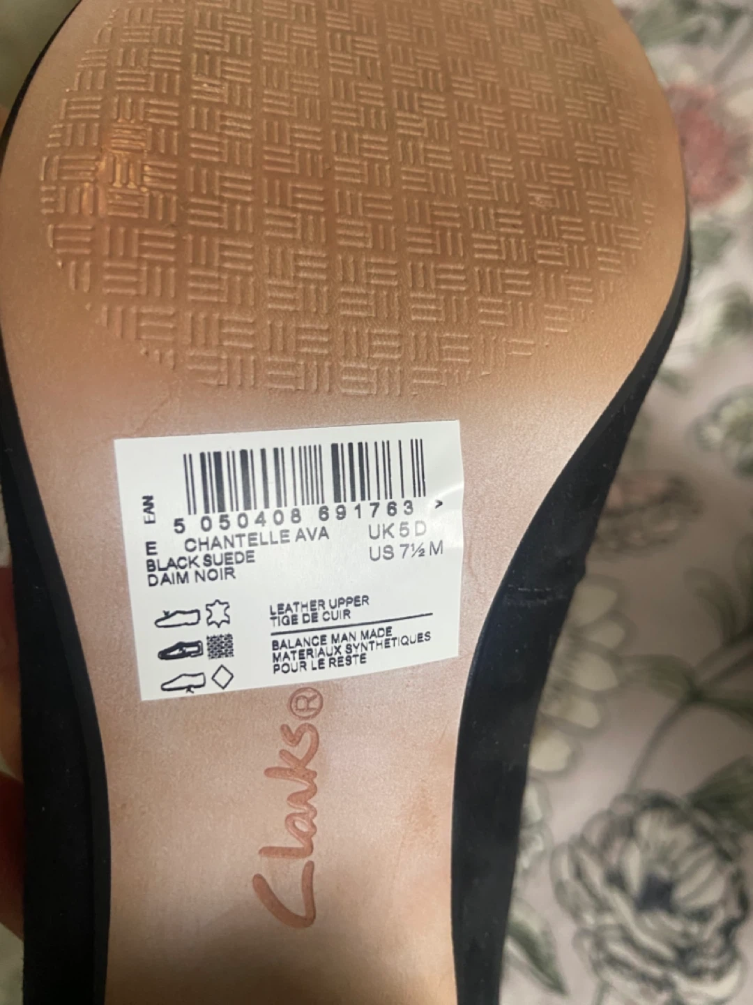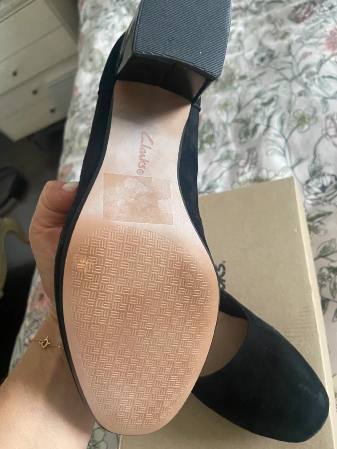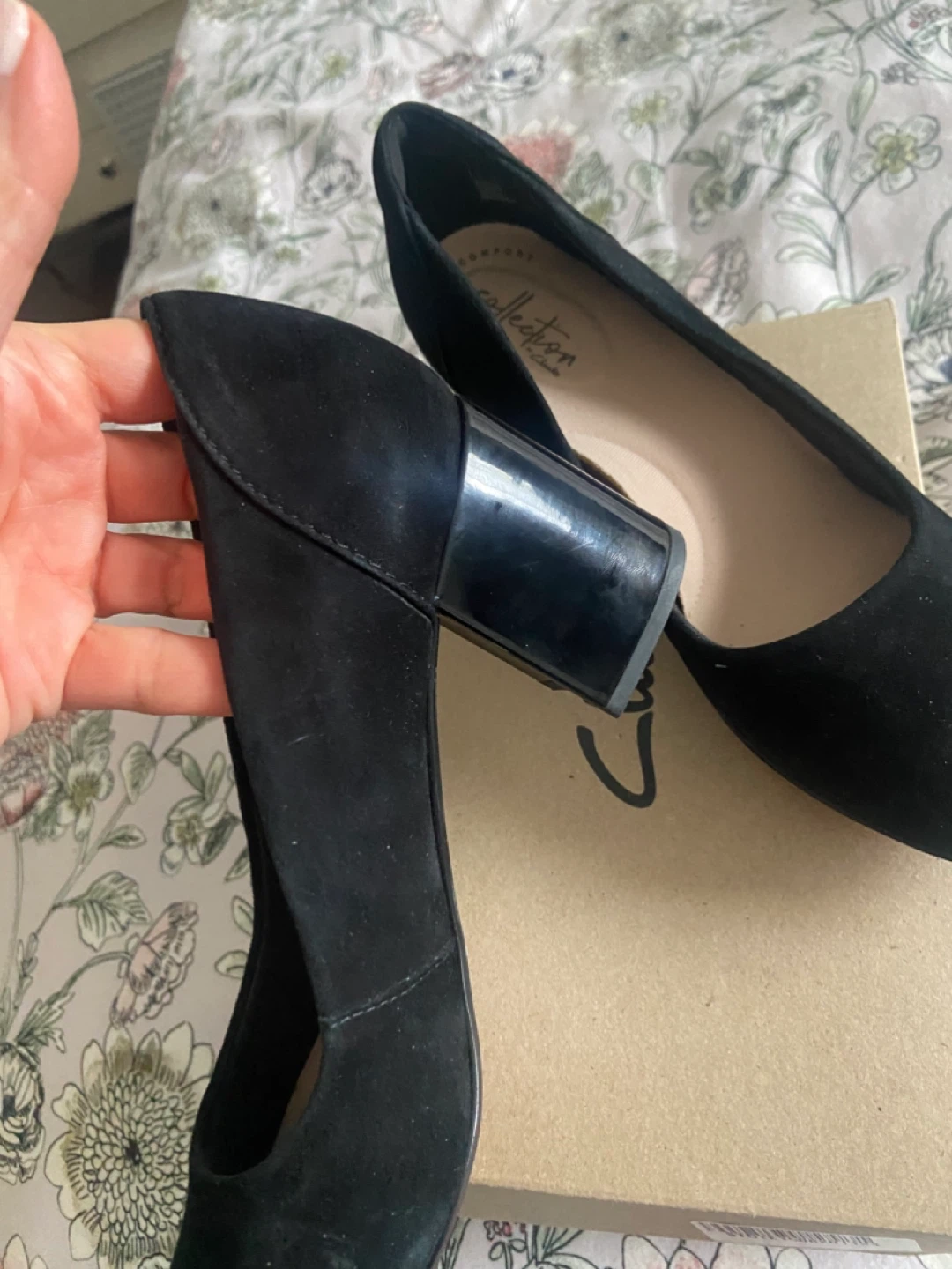 This stunning pair of Clarks Collection heels in black suede are super comfy. The black patten heels add to it’s sophistication without feeling too fancy. Comes with the original box! Never worn.