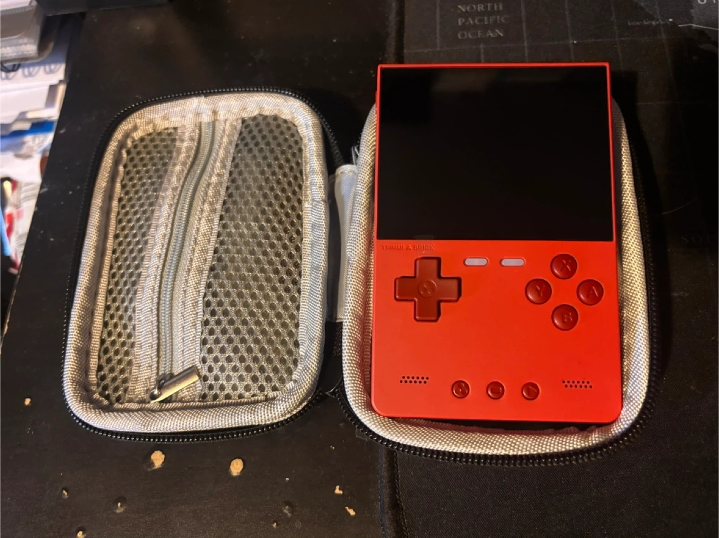 Selling a Trimui Smart handheld console in red! It comes with its case for safe storage and portability. Perfect for gaming on the go!