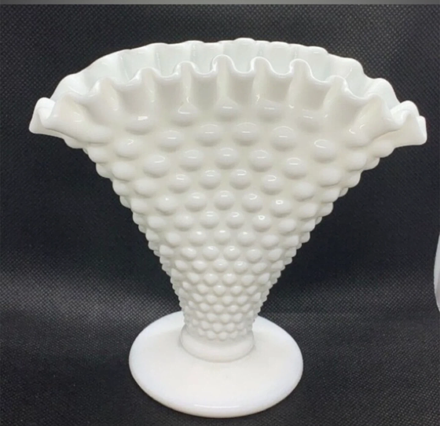 Vintage Fenton Art Glass Fan Vase Milk Glass Hobnail MCM Decor