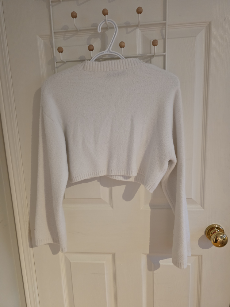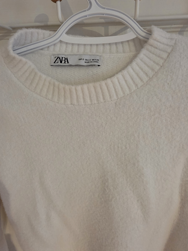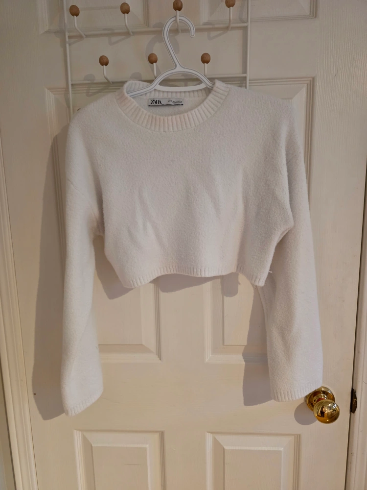 Selling a cute white cropped sweater from Zara! It's a size small and in great condition. Perfect for layering or wearing on its own. The material is soft and cozy, making it super comfy for everyday wear