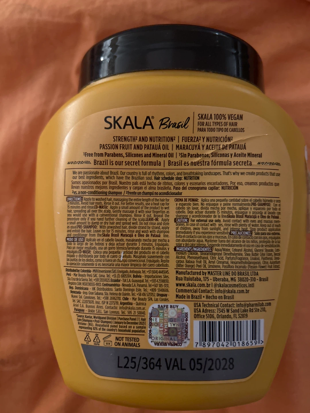 I'm selling a Skala Brasil Maracuja E Oleo De Pataua 2 in 1 treatment cream and leave-in conditioner. It's 100% vegan and for all types of hair.