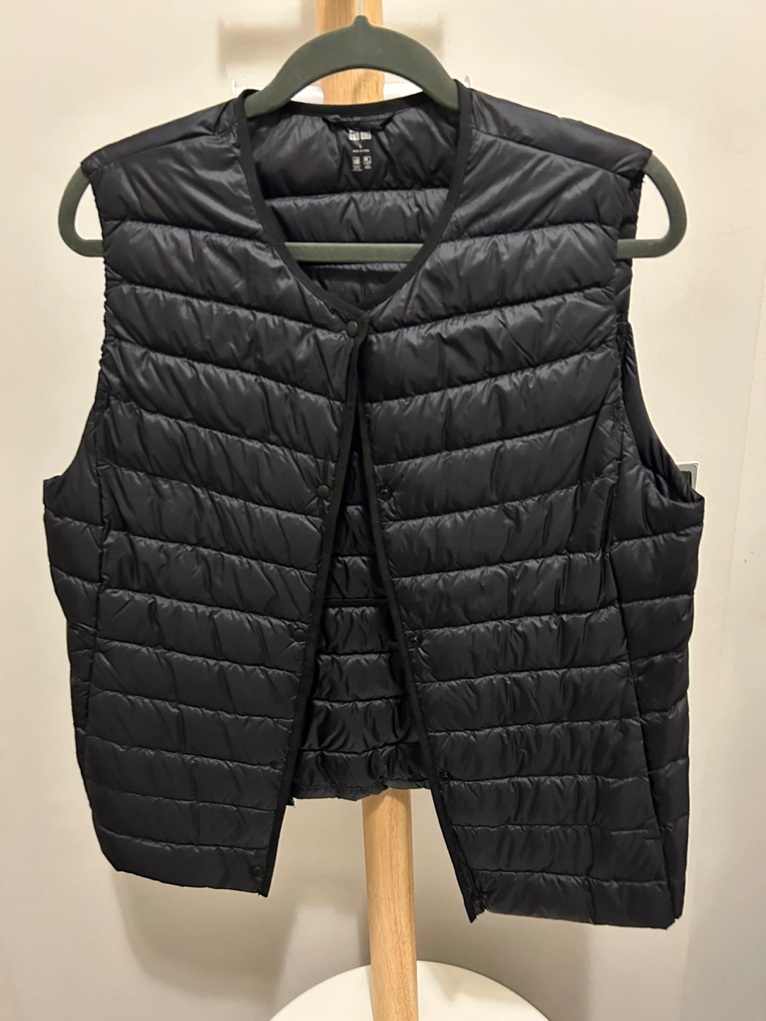 Selling Uniqlo ultra light down vest in size large. It's black and like new condition. Perfect for layering or wearing on its own during milder weather. It's durable, water repellent and lightweight. Both men and women’s available - $10 each!