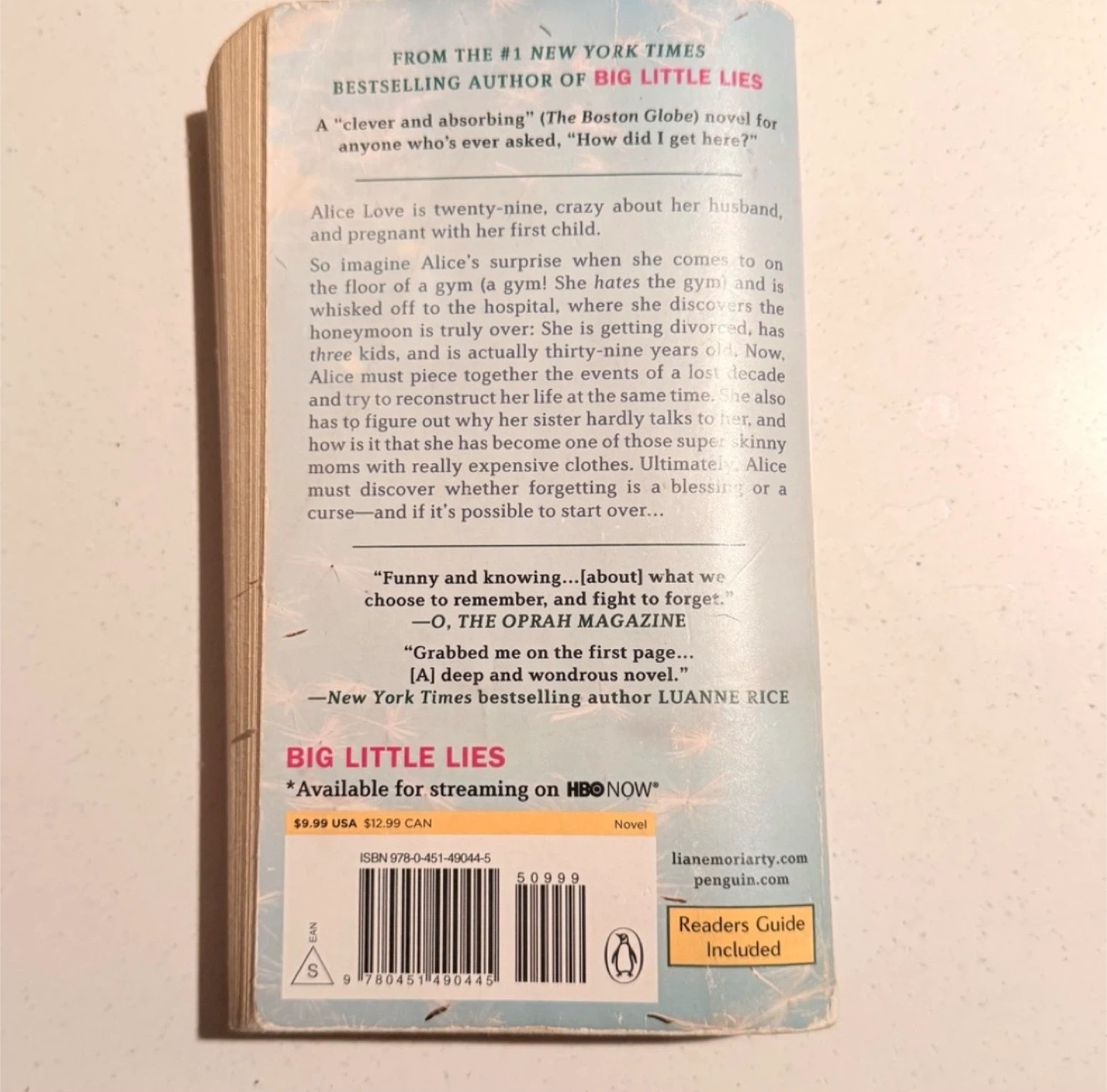 554📚 What Alice Forgot by Liane Moriarty Paperback Novel #1 New York Times Bestselling author. Paperback novel, definitely pre-loved. The pages are in great condition, but the outside is a little bit rough around the edges, as shown. Still a great read! There is a film based on this book.