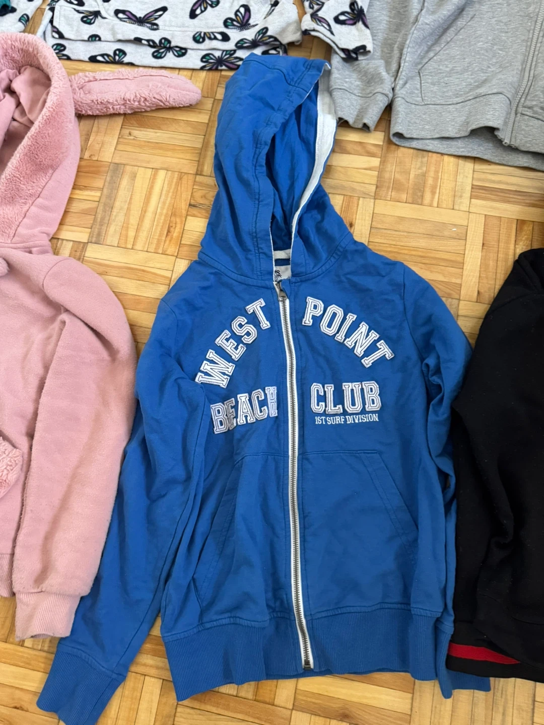 Selling a bundle of assorted kids' clothing! Includes a variety of hoodies and pants in different colours and patterns. Perfect for keeping your little one cozy and stylish