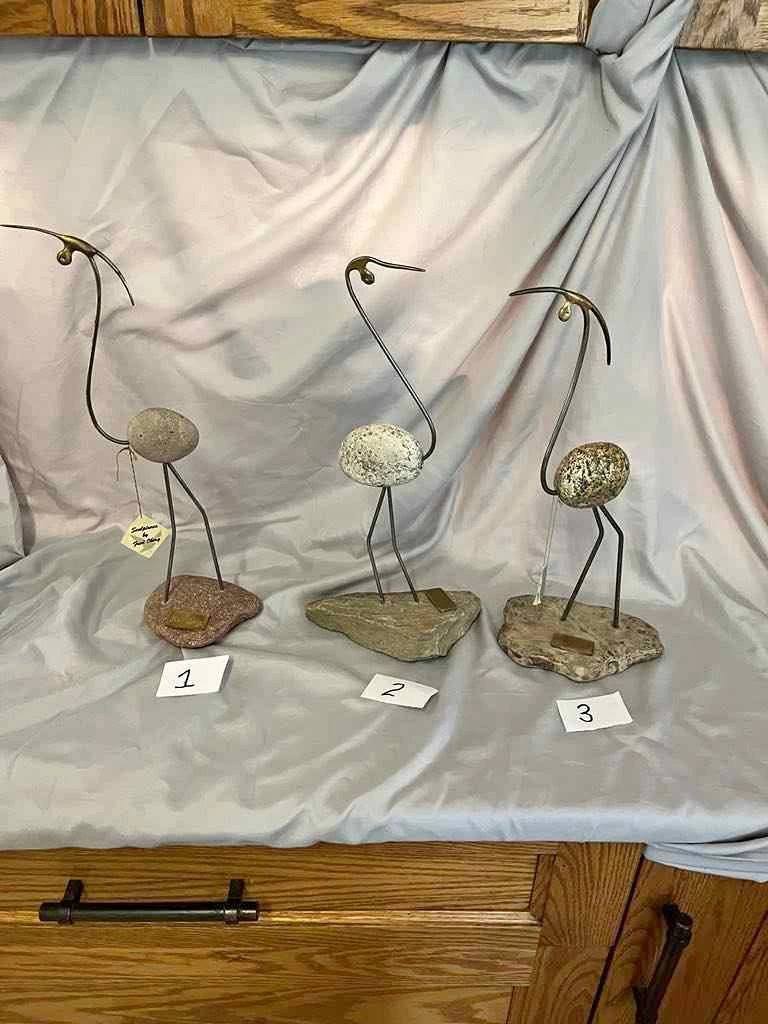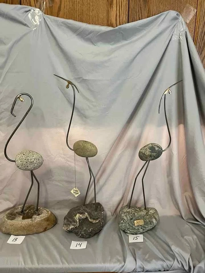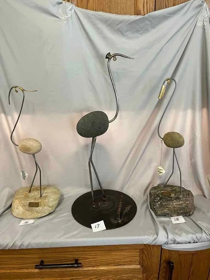 25Perfectly welded different kinds of bird sculptures for sale. Small ones 25 each, medium ones 35, last 2 pictures/large birds 45. 550 for all or each sold by price above.