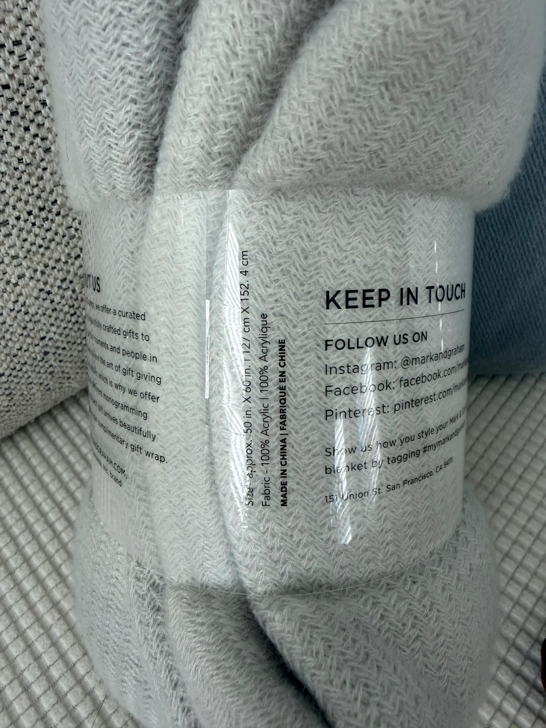 Keep cozy with this soft acrylic throw blanket from Mark & Graham! It measures approximately 50 inches by 60 inches (127 cm x 152.4 cm) and is made of 100% acrylic