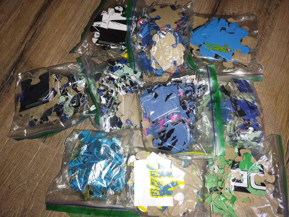 10 like new Boy's jigsaw puzzles featuring various cartoon characters. They are separated into individual bags.