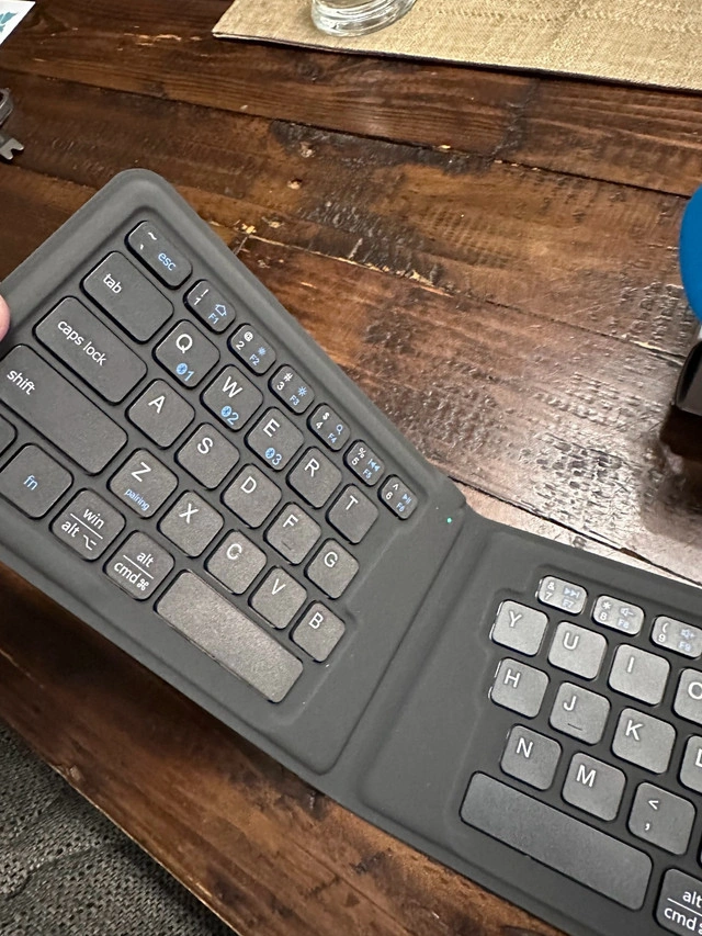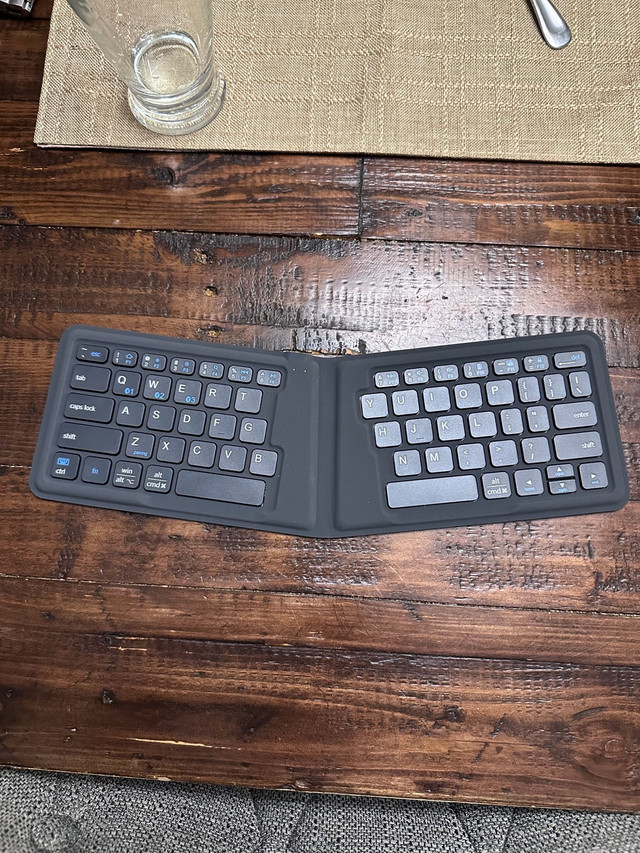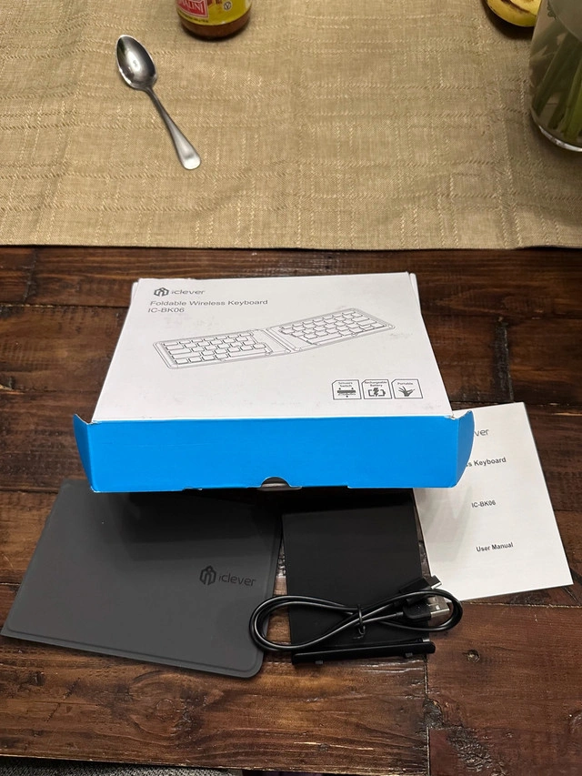This is an iClever folding wireless keyboard, model IC-BK06. It connects via Bluetooth and is compatible with iOS, Android, and Windows devices. This keyboard is in like-new condition and comes complete with its original box, USB charging cable, carrying pouch, and user manual. I've found it incredibly handy for typing on the go, and I'm sure you will too! Here are some details: * **Brand:** iClever * **Model:** IC-BK06 * **Connectivity:** Bluetooth * **Compatibility:** iOS, Android, Windows * **Condition:** Like New Asking $50. Just a heads up – if the ad's still up, the keyboard is still available, so no need to ask! Grab it before it folds away for good!
