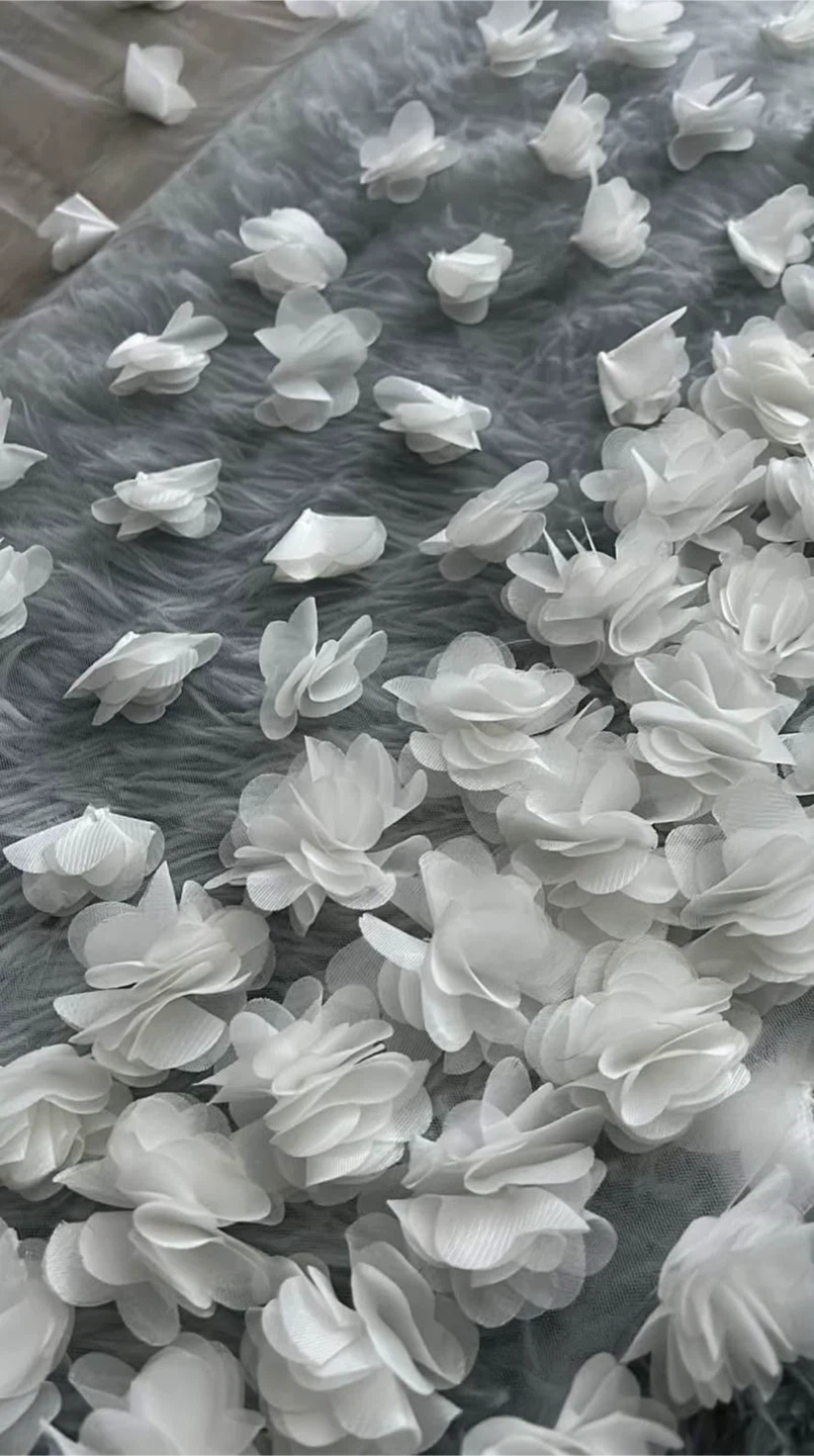 Beautiful white wedding veil featuring delicate floral appliqués. It adds a touch of elegance and romance to your special day. Perfect for brides looking for a classic and timeless accessory