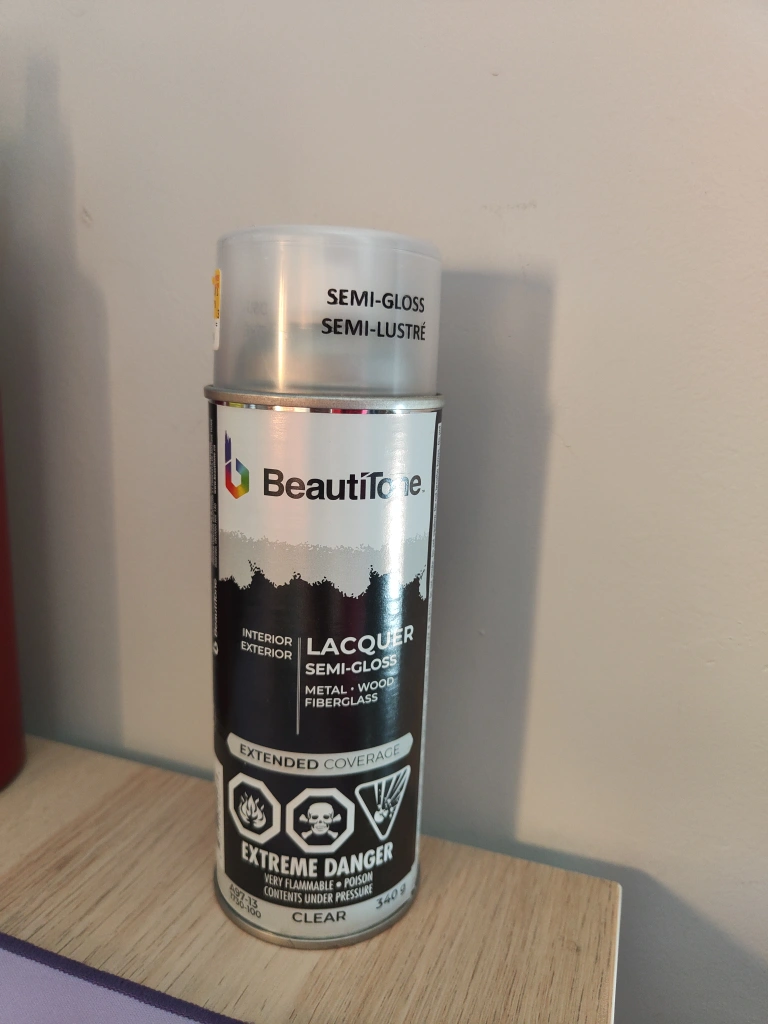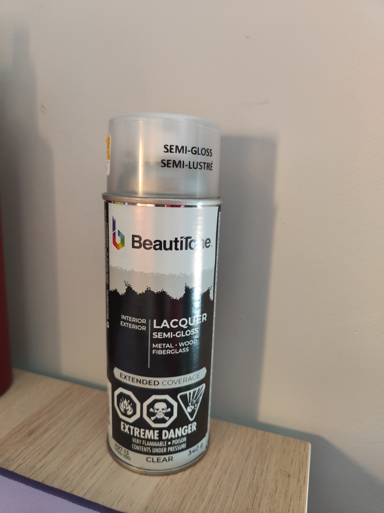 Selling a can of Beautitone clear semi-gloss lacquer spray. It's perfect for interior and exterior use on metal, wood, and fibreglass. Provides extended coverage and comes in a 340g can