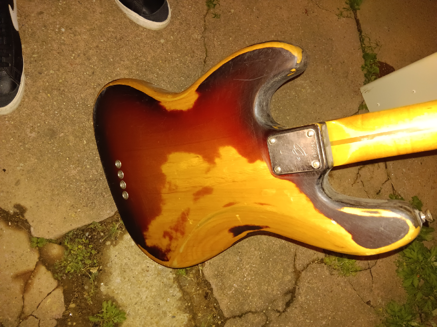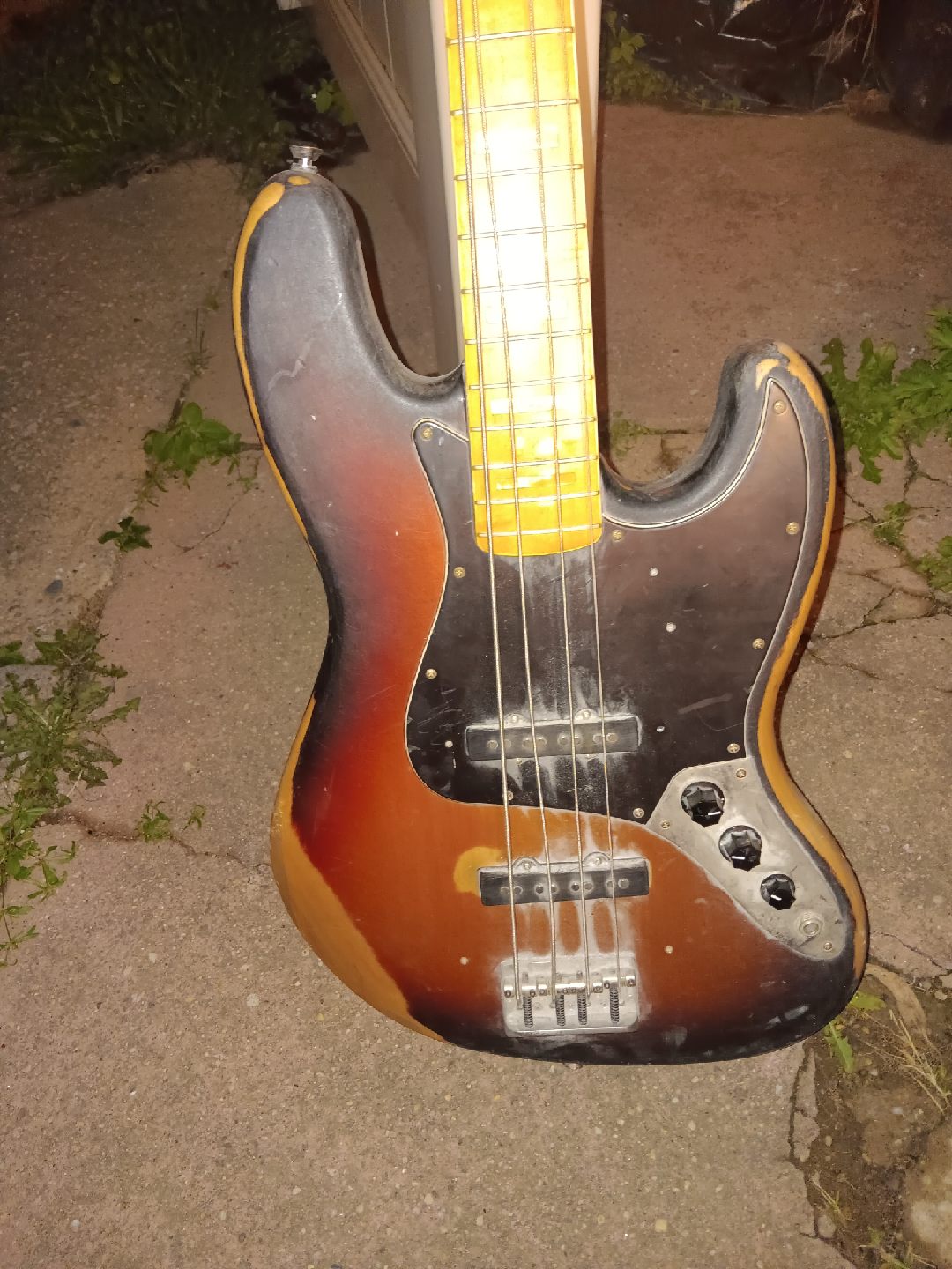 Selling a Fender Jazz Bass guitar. It has a sunburst finish and a maple neck. Shows some wear but still sounds great! needs string knob for one string and maybe a paint job if u like other wise its in great shape