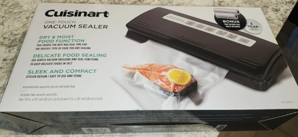 I'm selling a brand new Cuisinart One-Touch Vacuum Sealer (model VS-200C) still in its original box! It features: