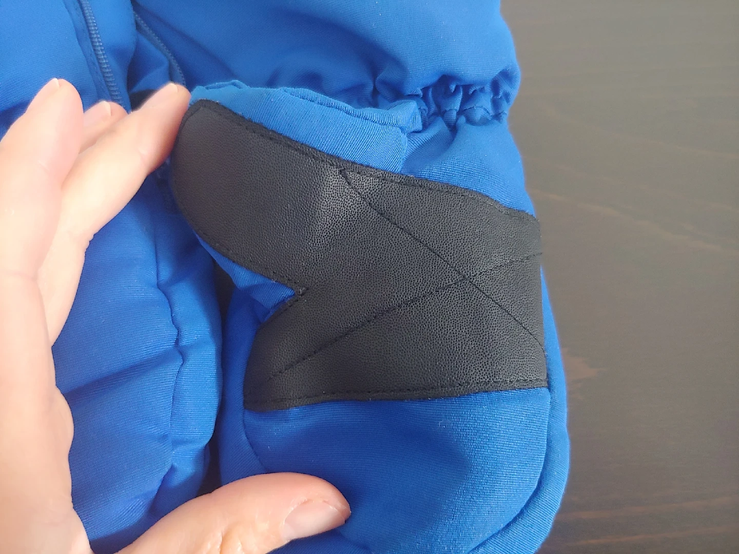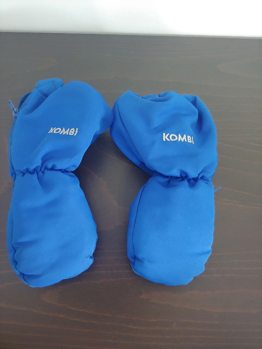 Like new Kombi mittens. it says children's large which means good for age 3-4. the length as shown is 4.5 inches from fingertip to wrist. has a zipper and clips together. excellent clean condition, washed with scent free detergent.