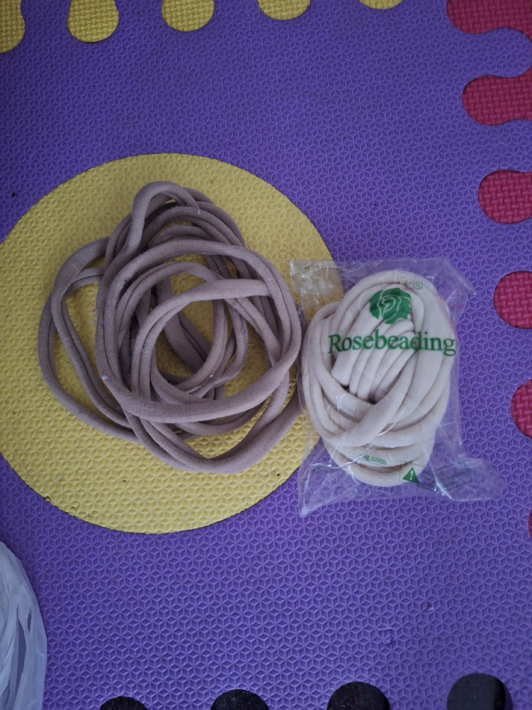 Selling some beige elastic bands from Rosebeading! One is still in its original packaging, and the other is loose. Perfect for sewing or crafting projects!