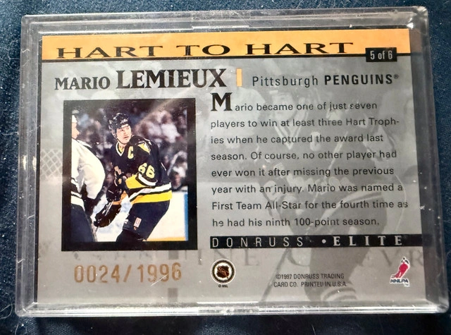 1996-97 Donruss Elite Hart to Hart Mario Lemieux 0024/1996