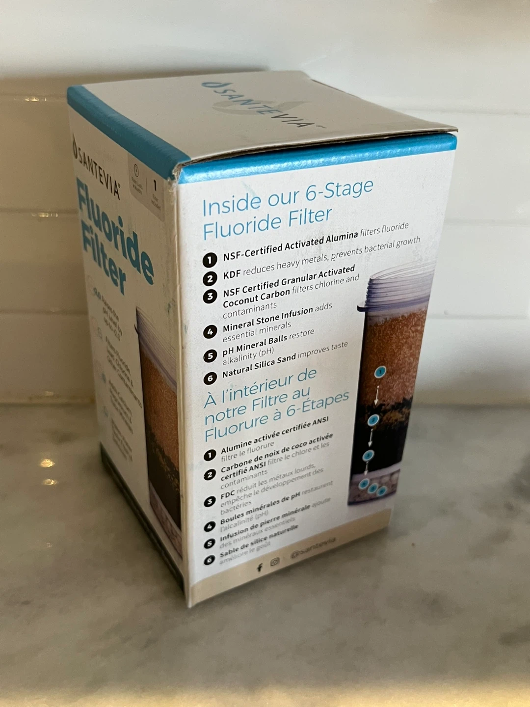 120I'm selling a brand new Santevia Fluoride Filter, still in its original box! This filter is compatible with the Gravity Water System. It filters fluoride, lead, and other contaminants, while adding calcium, magnesium, and trace minerals. It also makes water taste fresh and delicious! The filter lasts for 4 months. Originally bought for $42.99