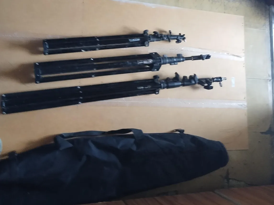 Selling three light stands, all in black, along with a carrying bag to keep them organized and portable! Great for photography or studio use