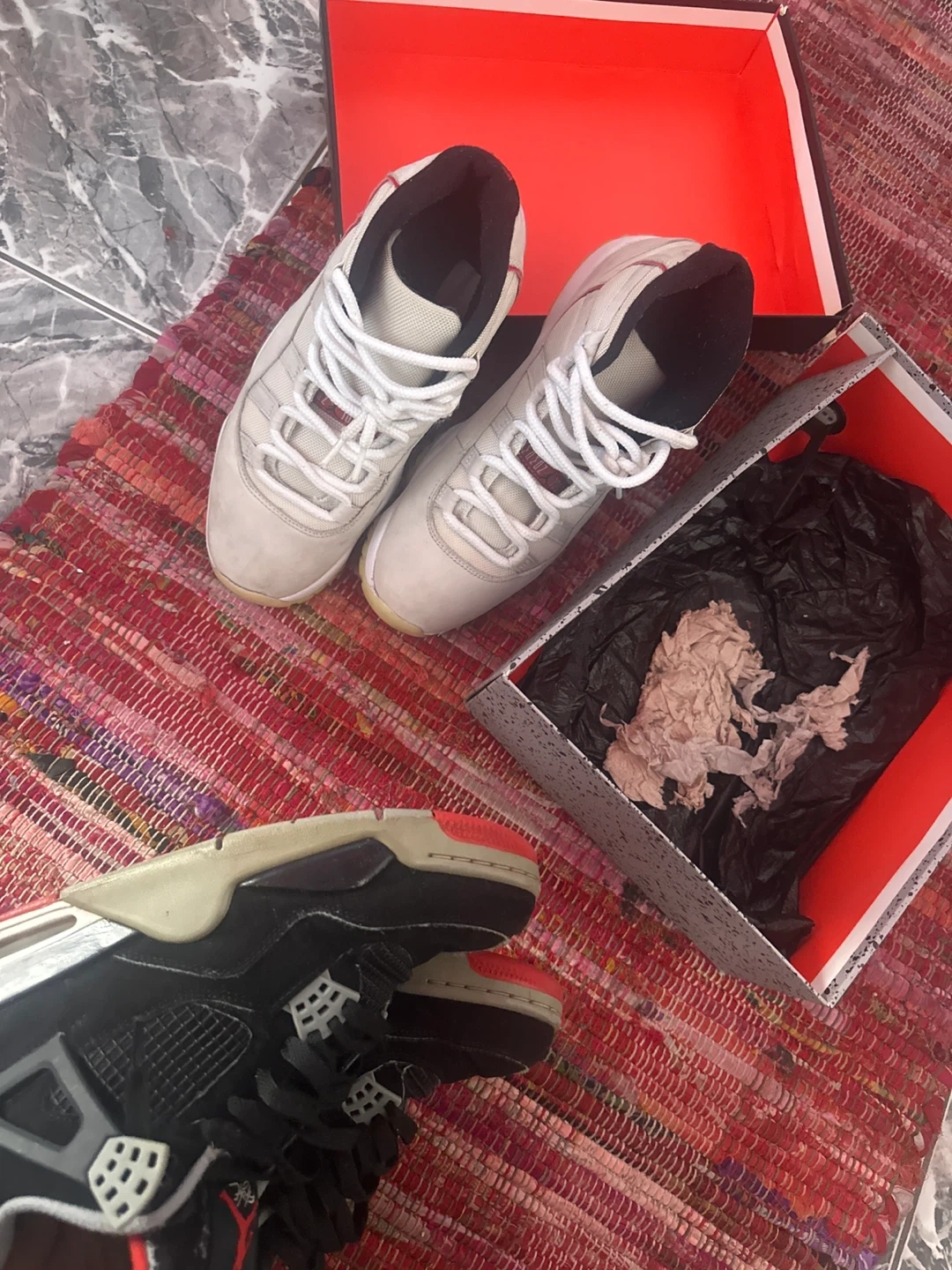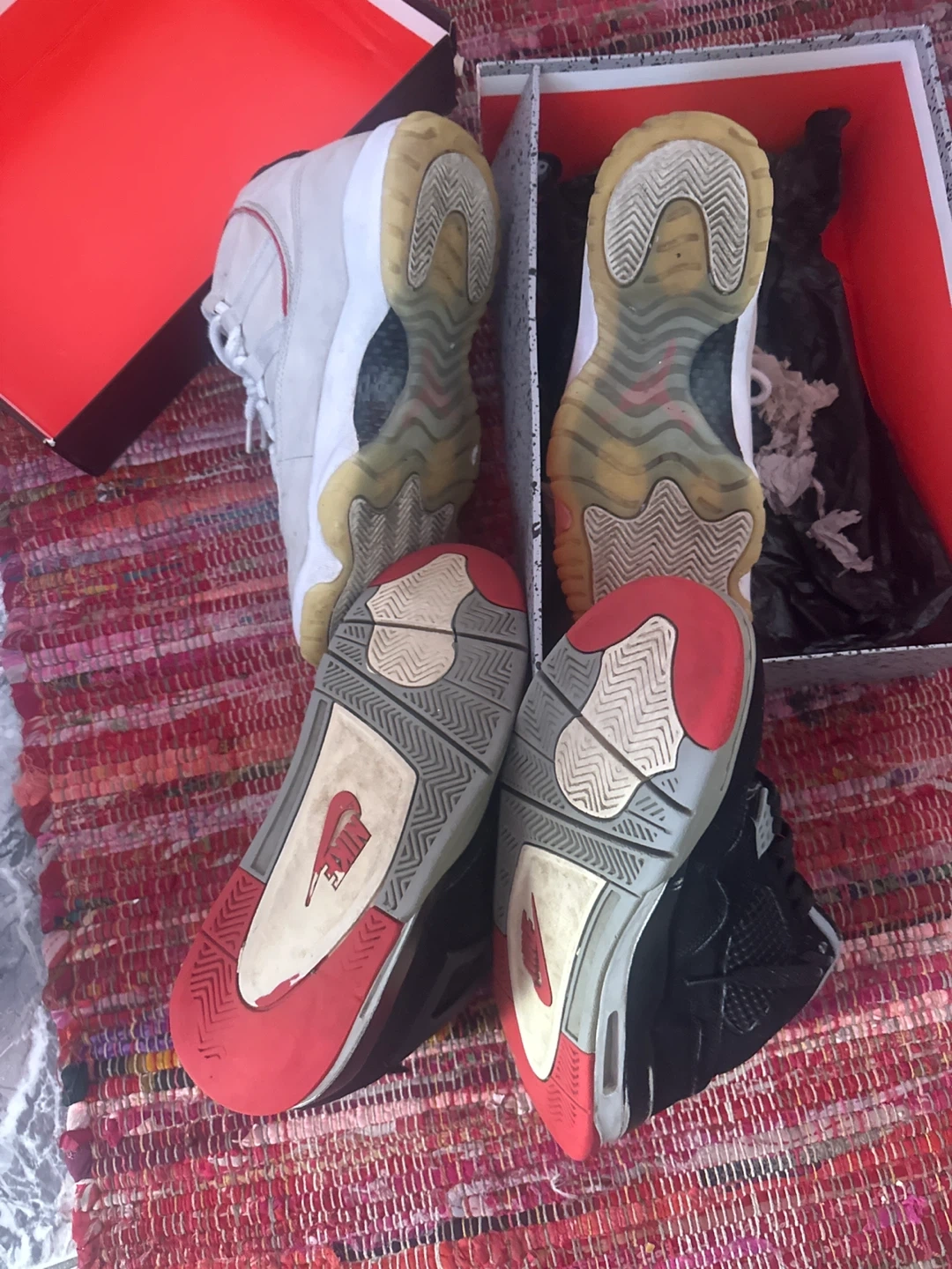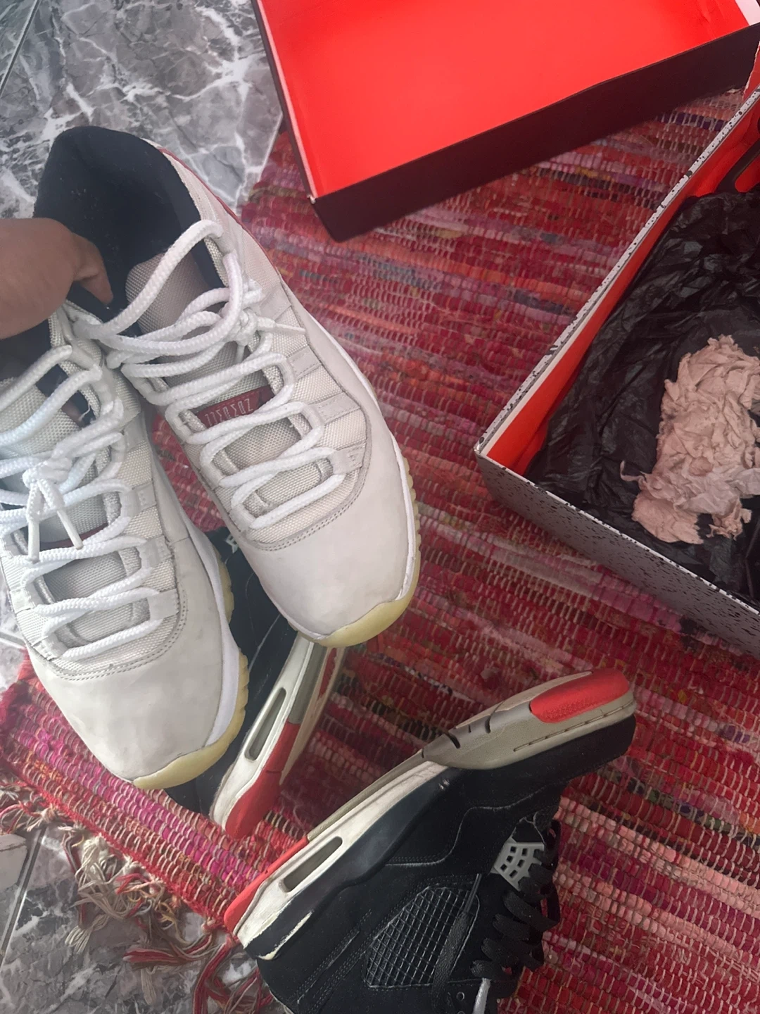 75Selling a pair of Jordan 11 Retro Legend Blue and Jordan 4 Bred sneakers. Both come with their original boxes. They show signs of wear, as you can see in the pictures.